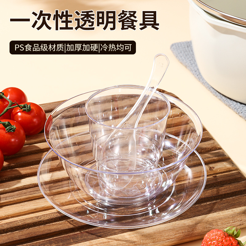 使い捨て食器皿箸スプーンカップセット食器を厚くして硬い高温プラスチック食器セット卸売り