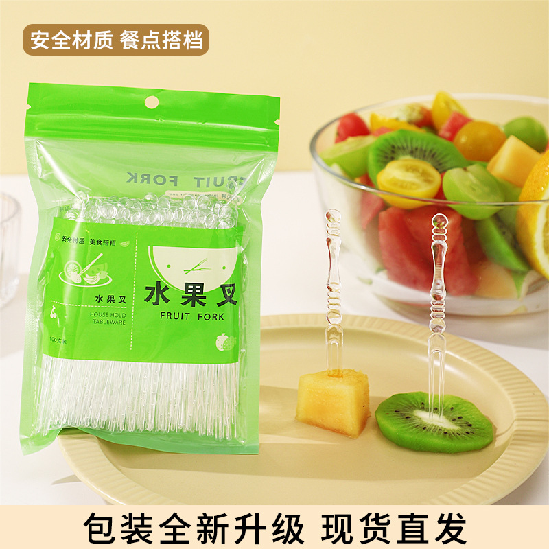 フルーツフォーク使い捨て食品級プラスチック缶家庭用商用竹節紋多機能サラダ果物サイン