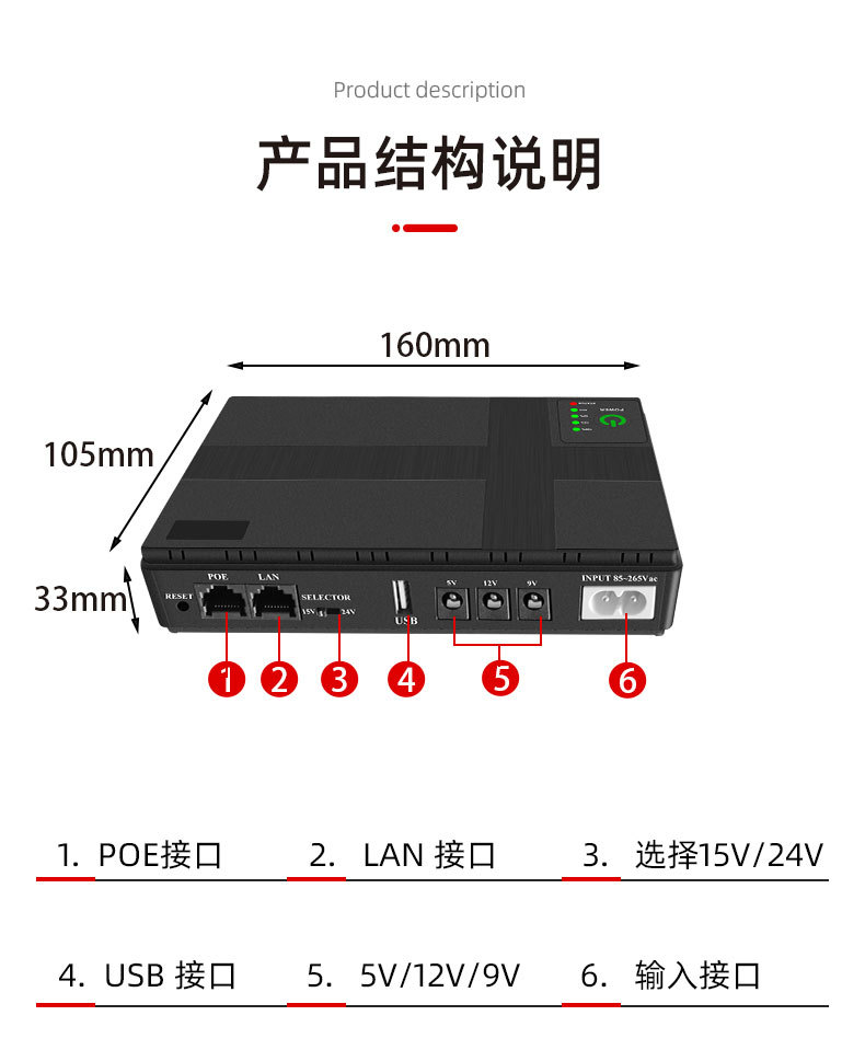 UPS1018P無停電電源5V9V12Vルーター光猫モニター予備充電宝携帯電話直流POE