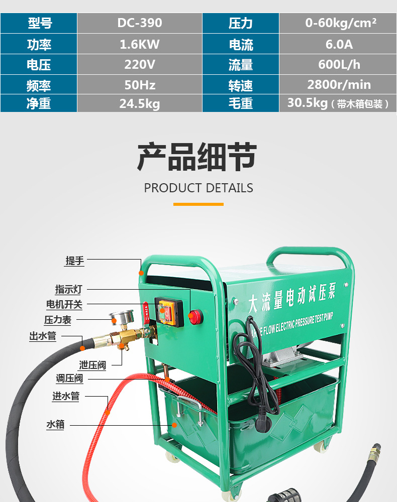 電動試圧ポンプ大流量消防配管DC-390水管試圧大出力打圧ポンプ配管試圧機