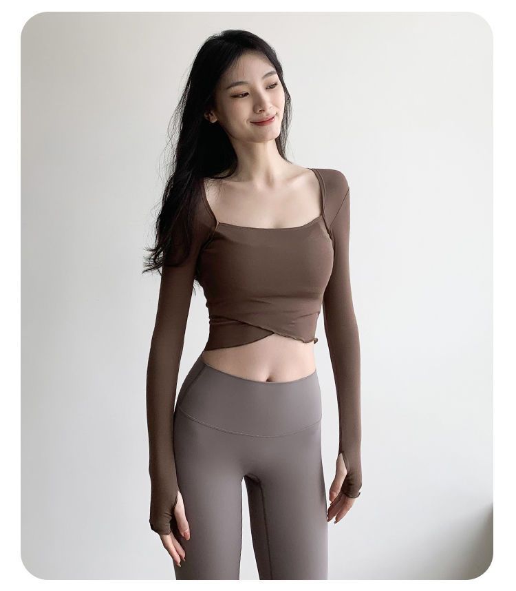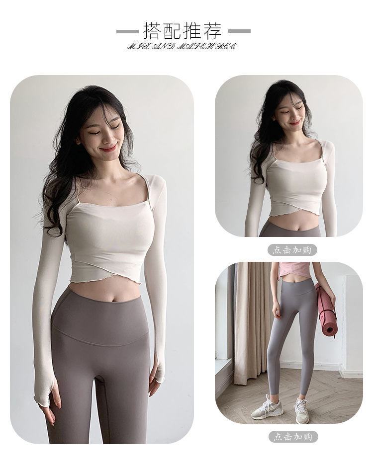 Vt mcqネット赤運動ヨガ服tシャツ女性外着ランニング長袖速乾露臍タイトなセクシーなフィットネス上着