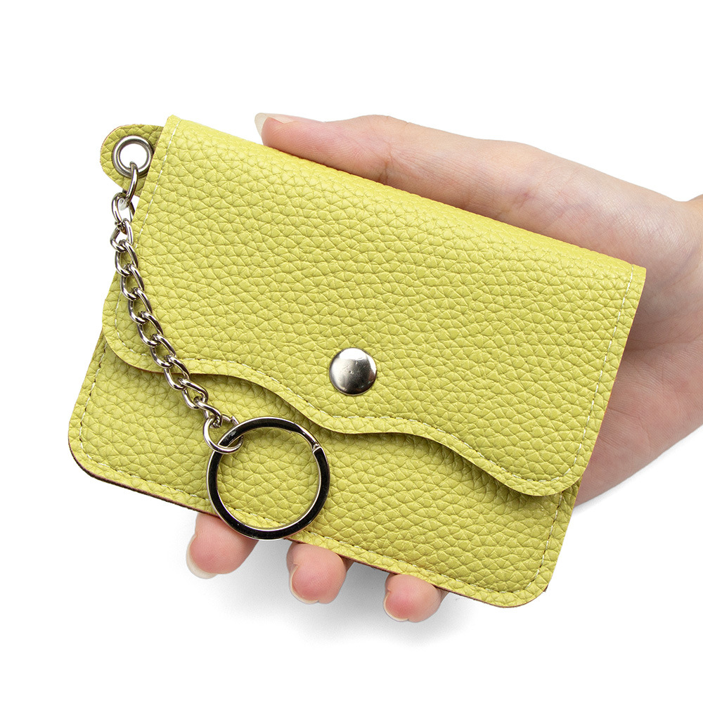 高颜值外贸热卖超薄卡包简约多卡位证件夹按扣卡夹防丢链条零钱包