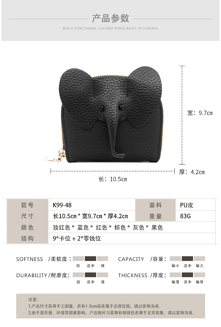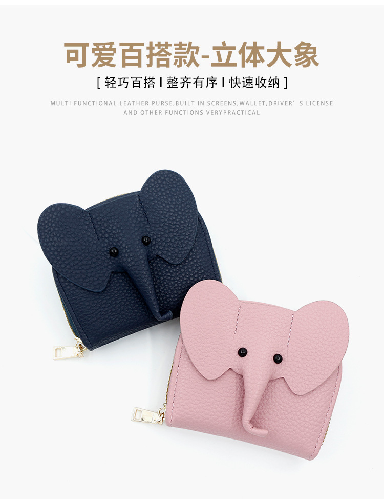 新型日系クロスボーダーオルガンカードバッグins創意個性小象ファスナー小財布多卡位証明書カードホルダー