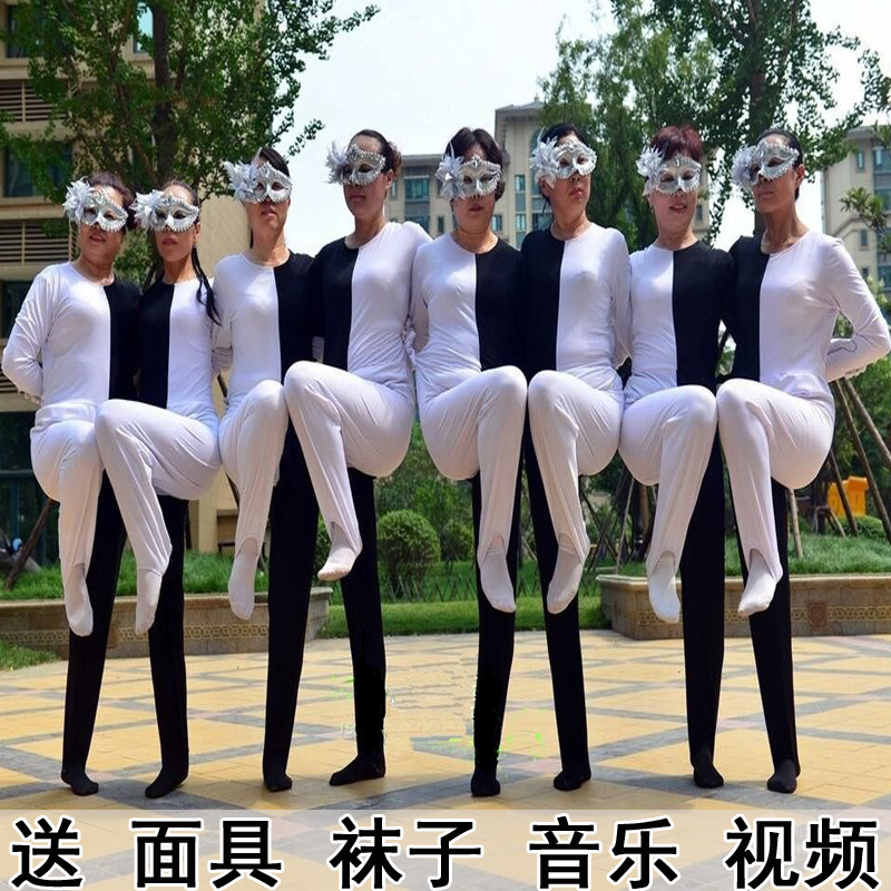 複数人の連体白黒の足のダンスの服装の視覚の錯覚のロシアのダンスの陰陽の2色は演技の服の年会を責めます。