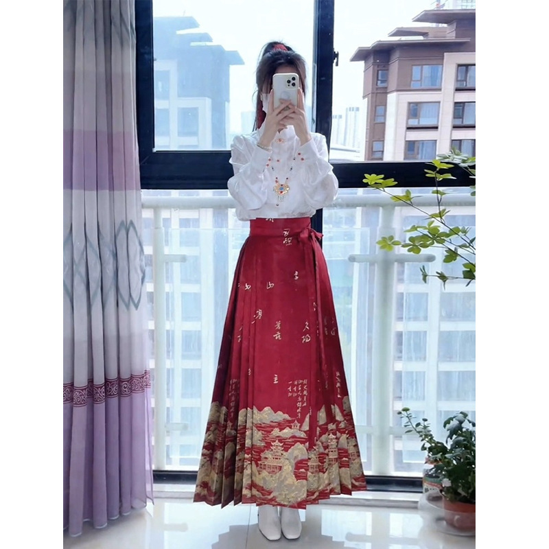 【天女下凡】改良漢服中国秋冬上着と新型日常馬面スカートのセット