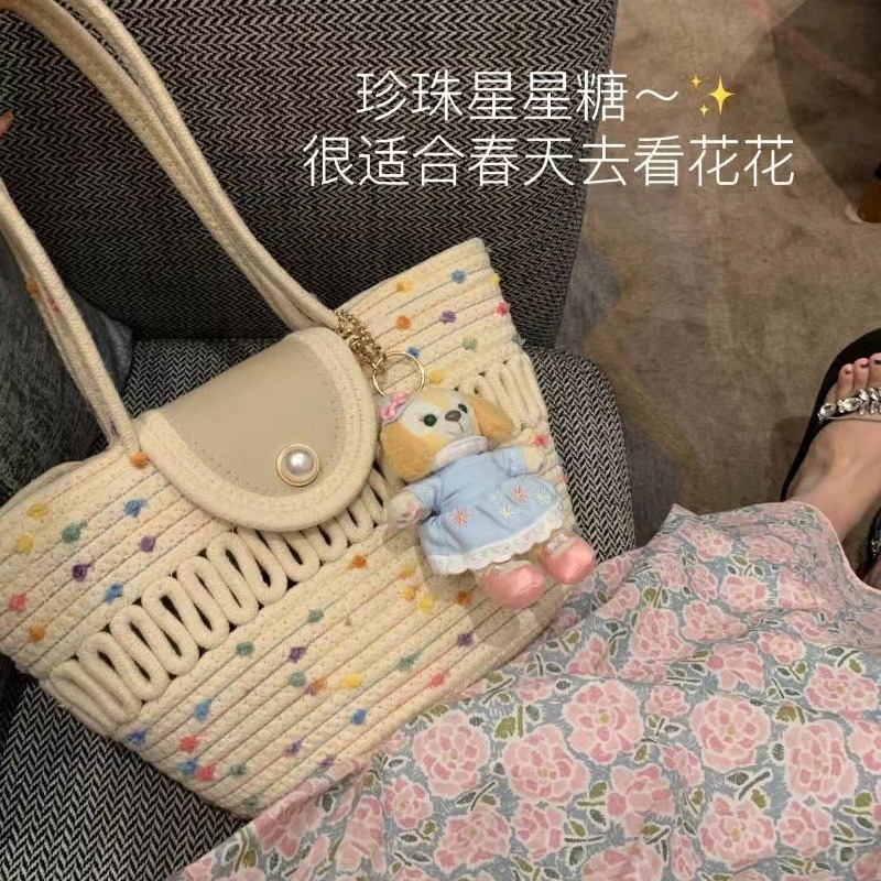 クロスボーダー編み斜めショルダーバッグ卸売ハンドバッグ夏通勤ワンショルダーバッグ大容量ビーチバッグかわいい人形