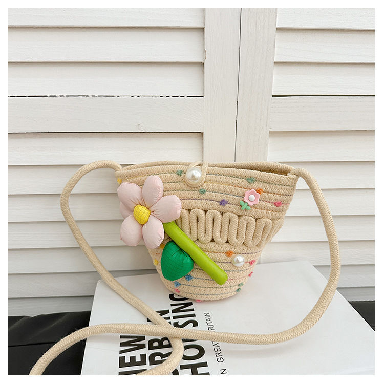 新しい綿の糸の手作りの編み物の子供のかわいい百合の花の斜めのショルダーバッグのカラーの笑顔のビーチバッグの草の編みの包み