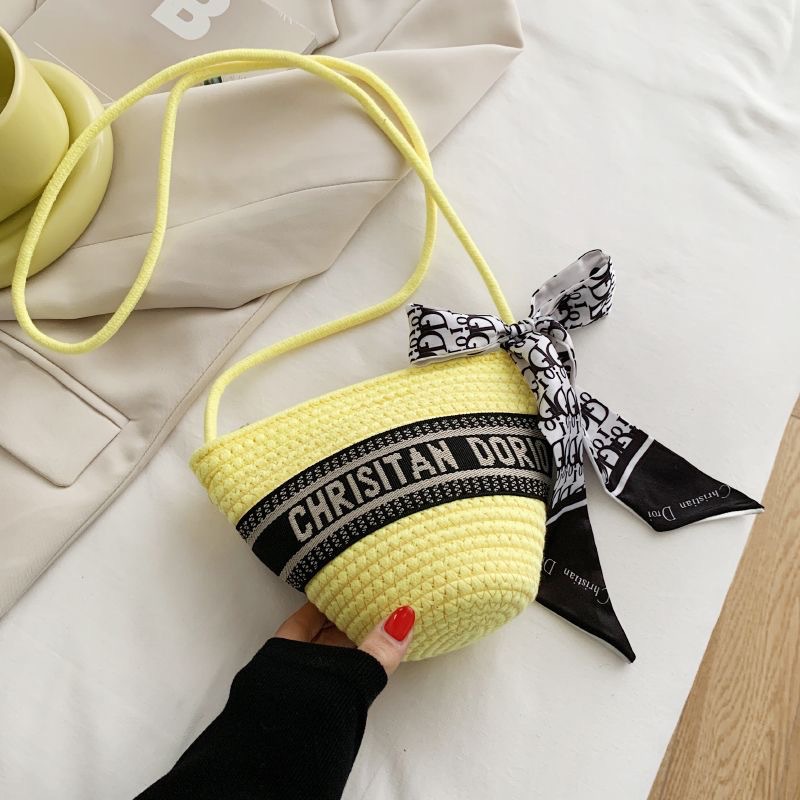 新品编み斜めショルダーバッグショルダーバッグおしゃれシンプルシルクスカーフハンドバッグinsリゾート风籐编みビーチバッグ