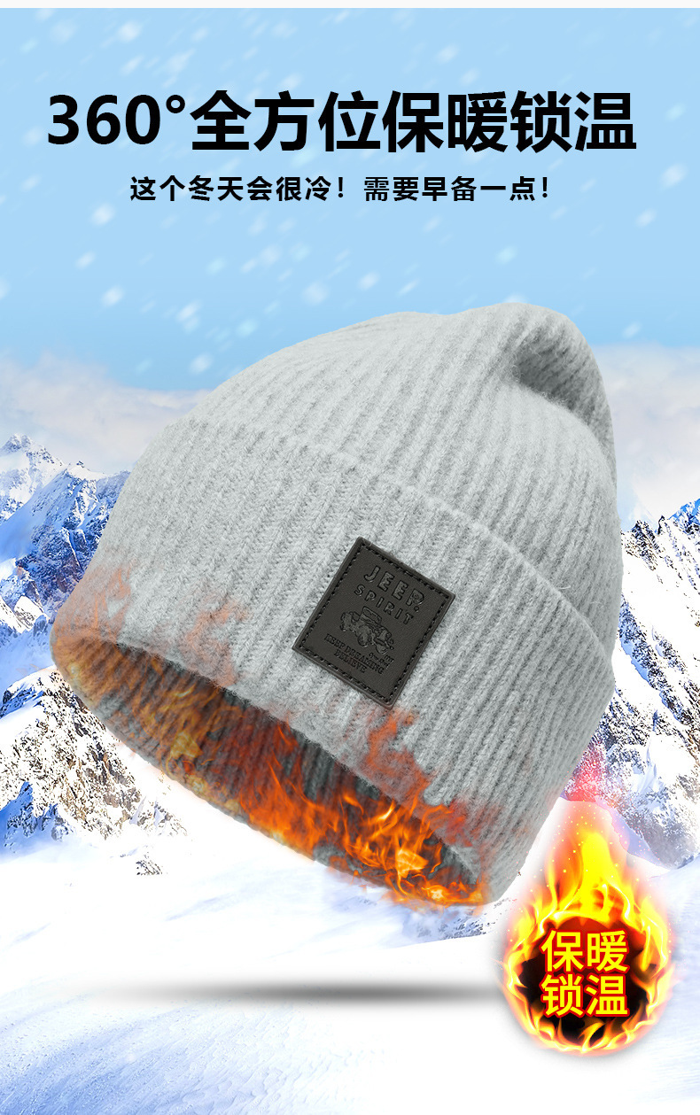 Jeep秋冬新作ウール帽子厚手耳保護帽子ニット保温男女モデル帽子a0633