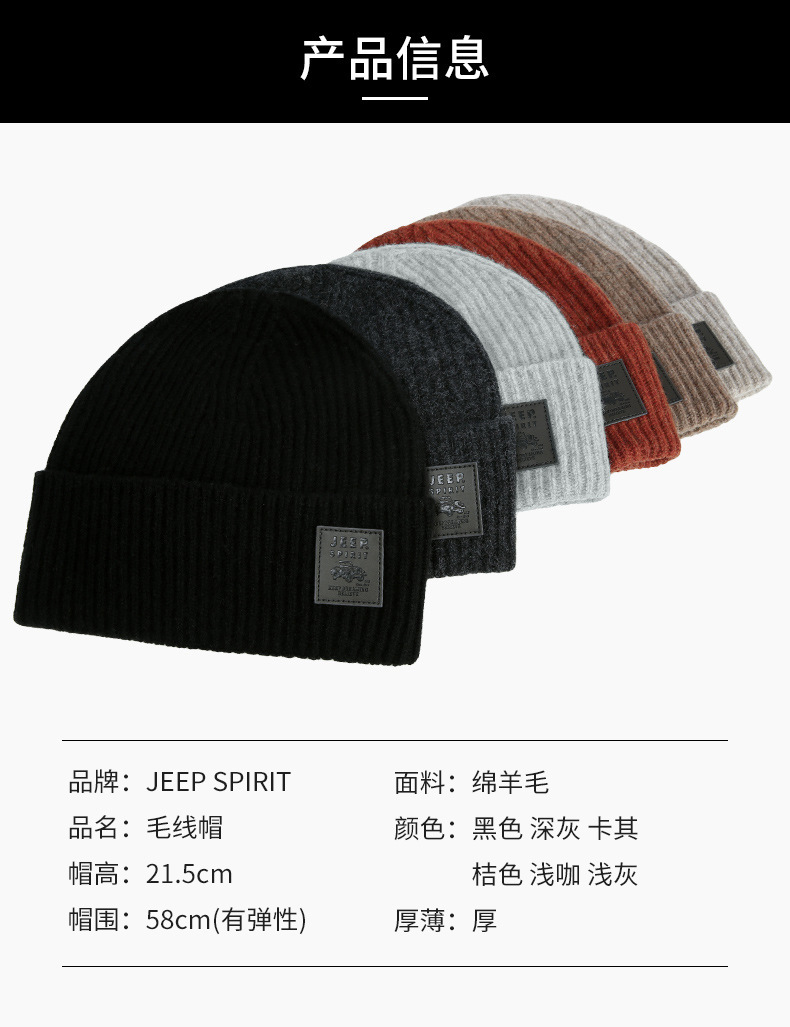 JEEP SPIRIT新款毛线帽加绒加厚秋冬保暖护耳帽子男士线帽子A0635