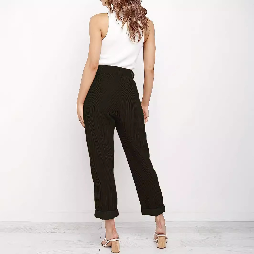 秋の新型女性用ハイウエストカジュアル純色コーデュロイゆるいストレートズボン