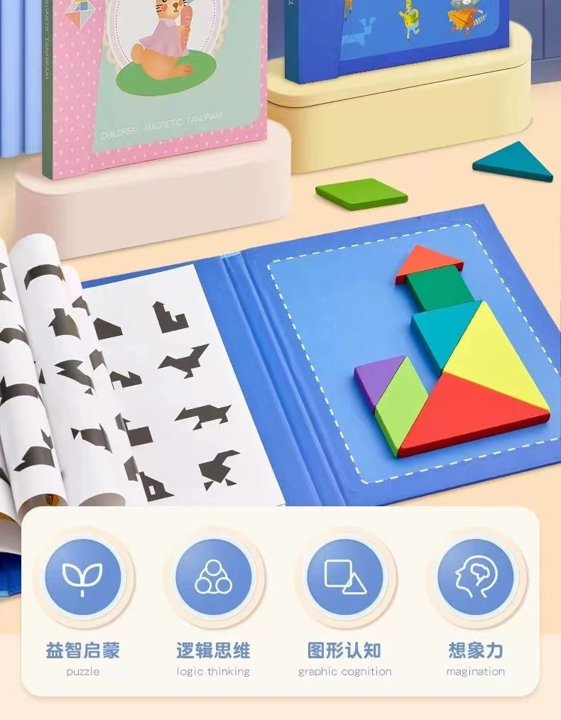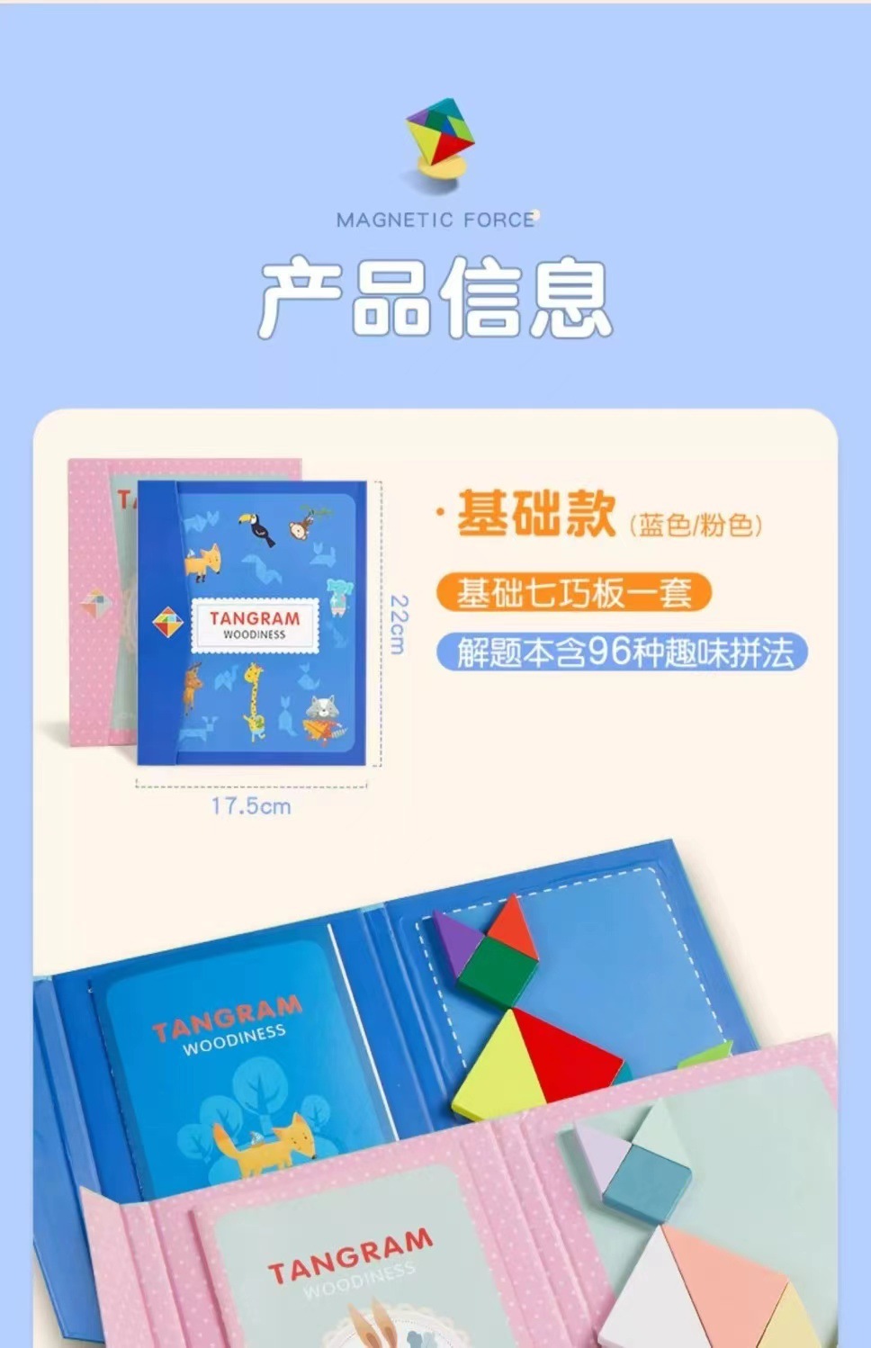 カラー 【青】磁性七巧板 + 96問のテーマ本,【ピンク】磁性七巧板 + 96問のテーマ本