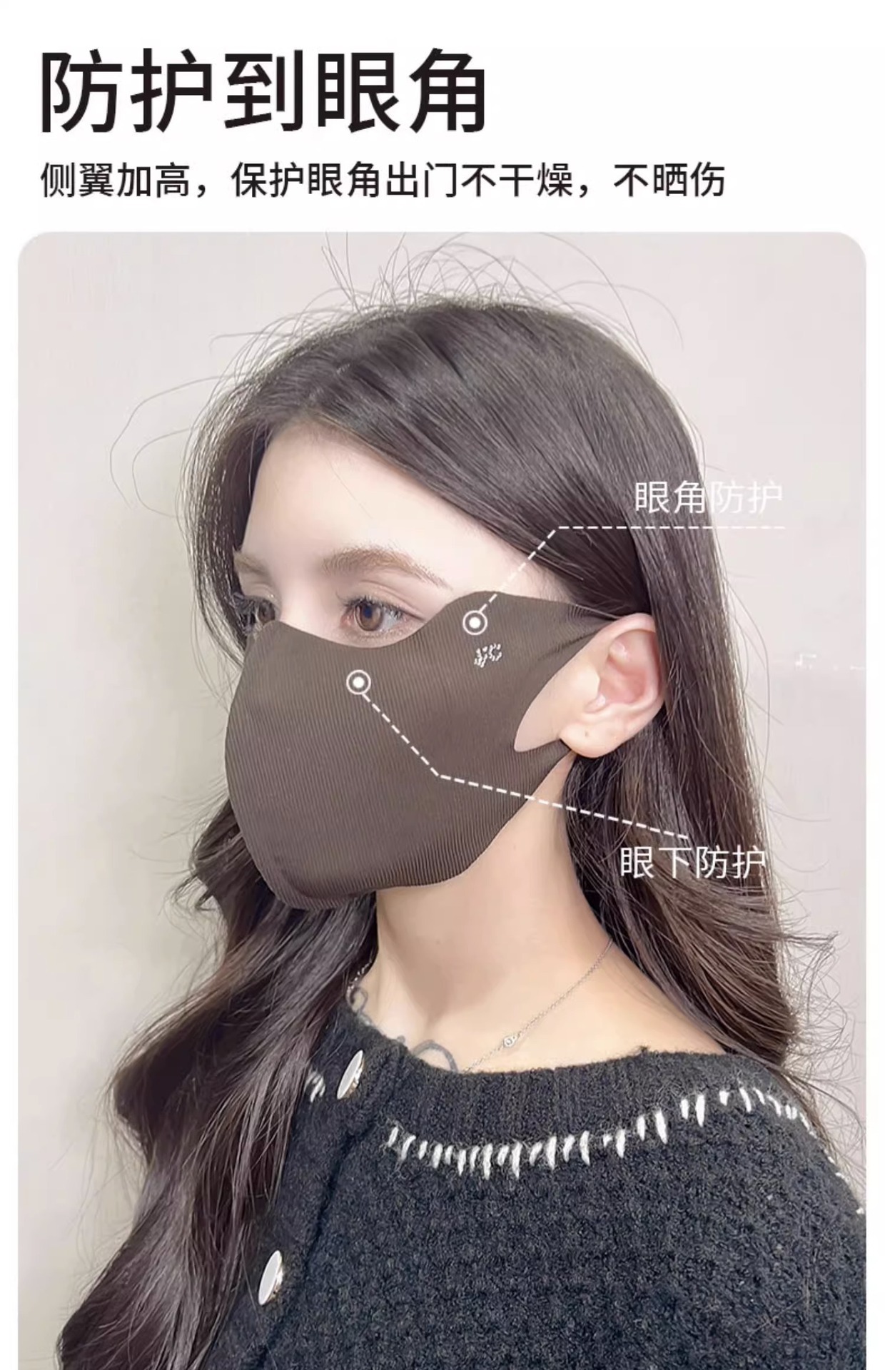 2024新型ヒアルロン酸眼角日焼け止めマスク紫外線防止高颜値女性屋外防風保温マスク