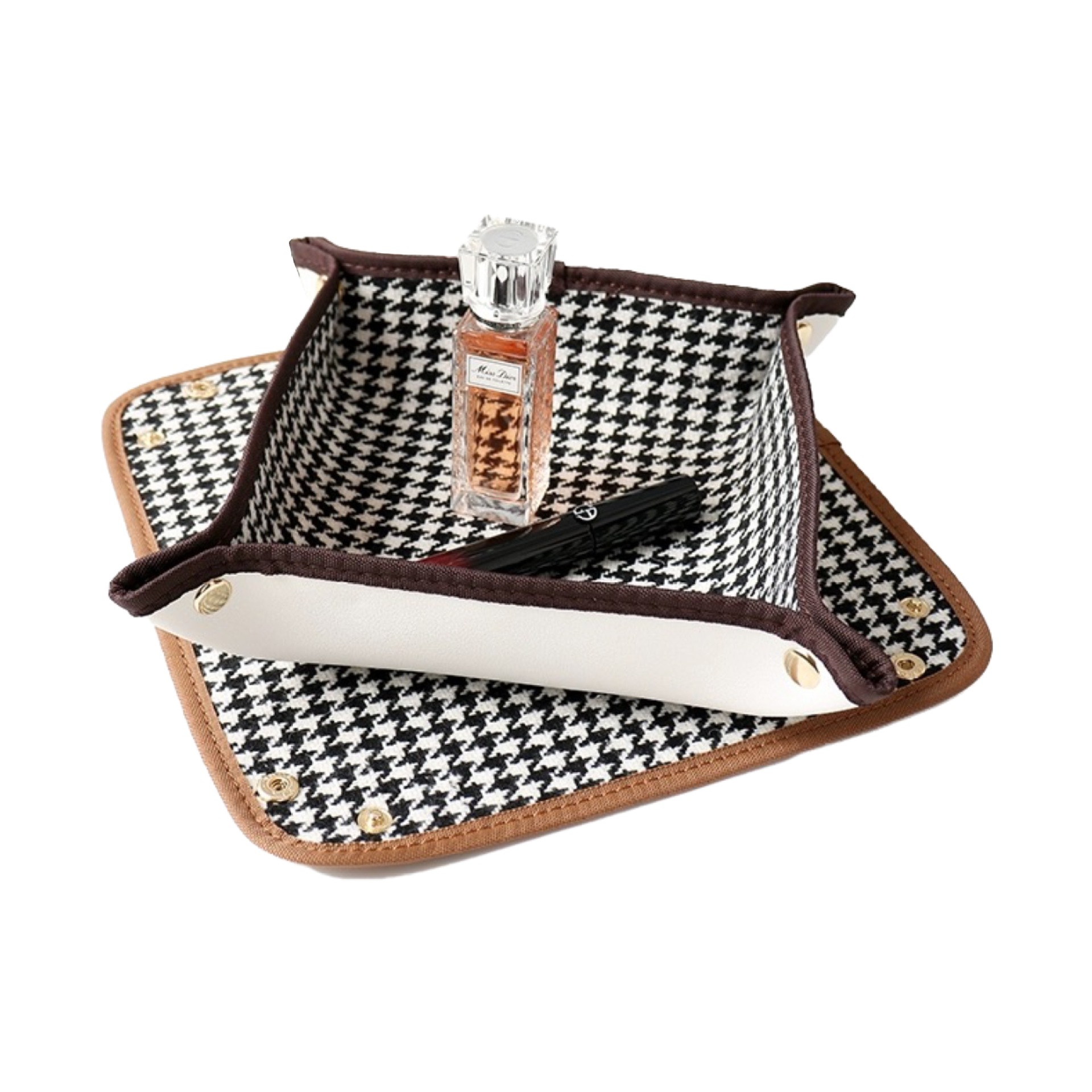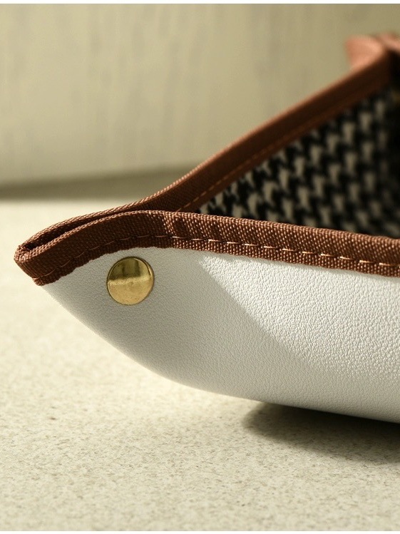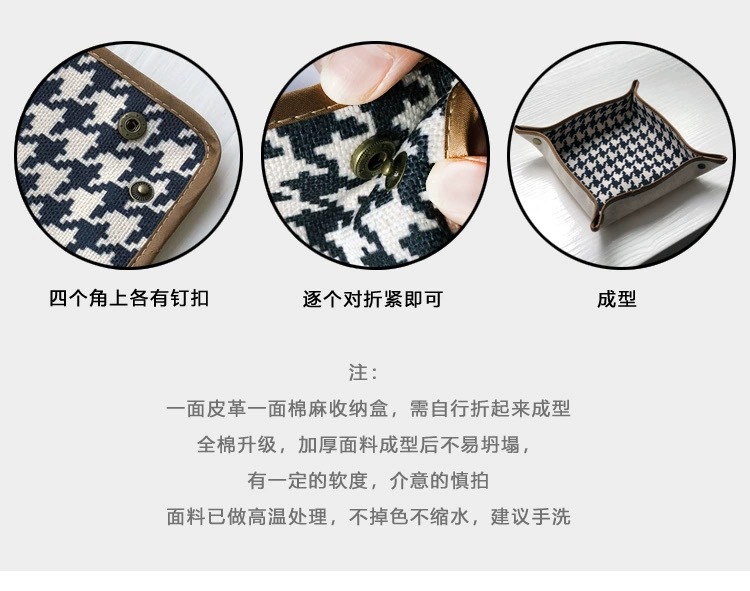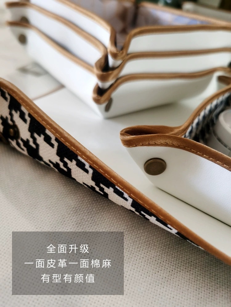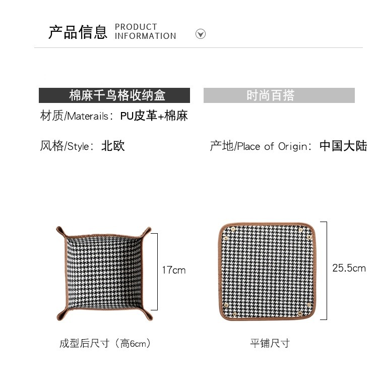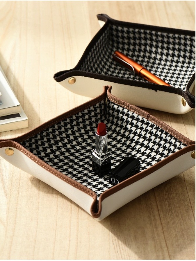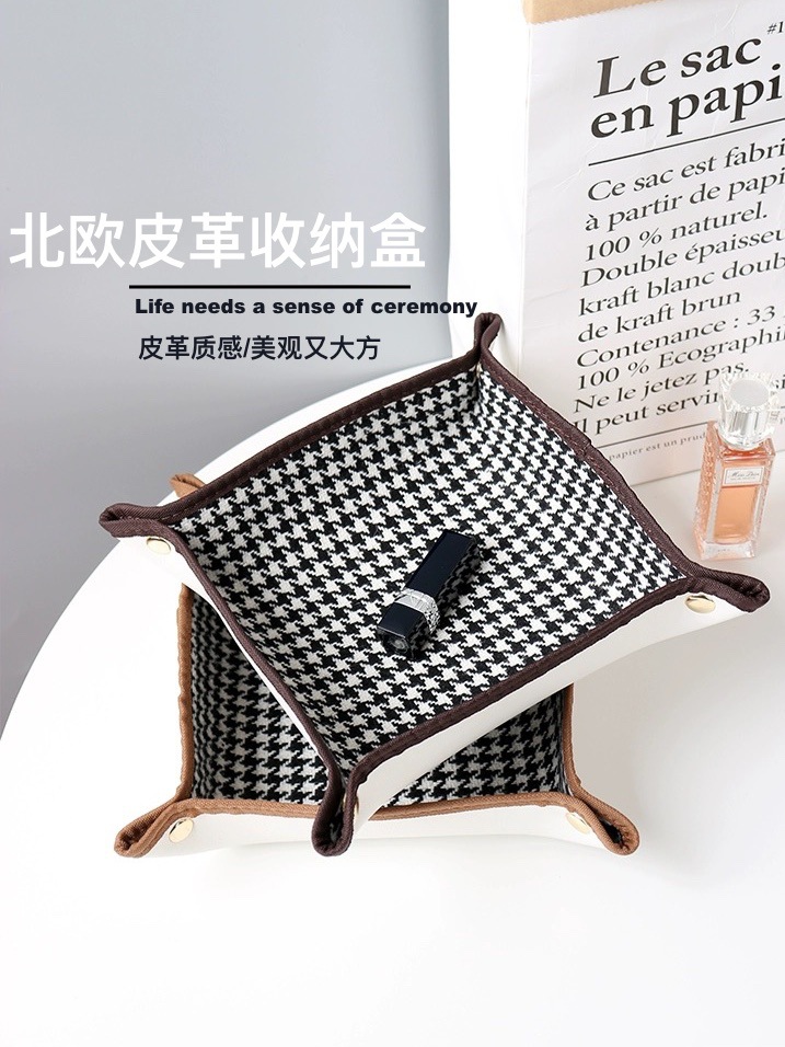デスクトップ革収納ボックスシンプル風千鳥格物置かご北欧風玄関キー化粧品雑物整理