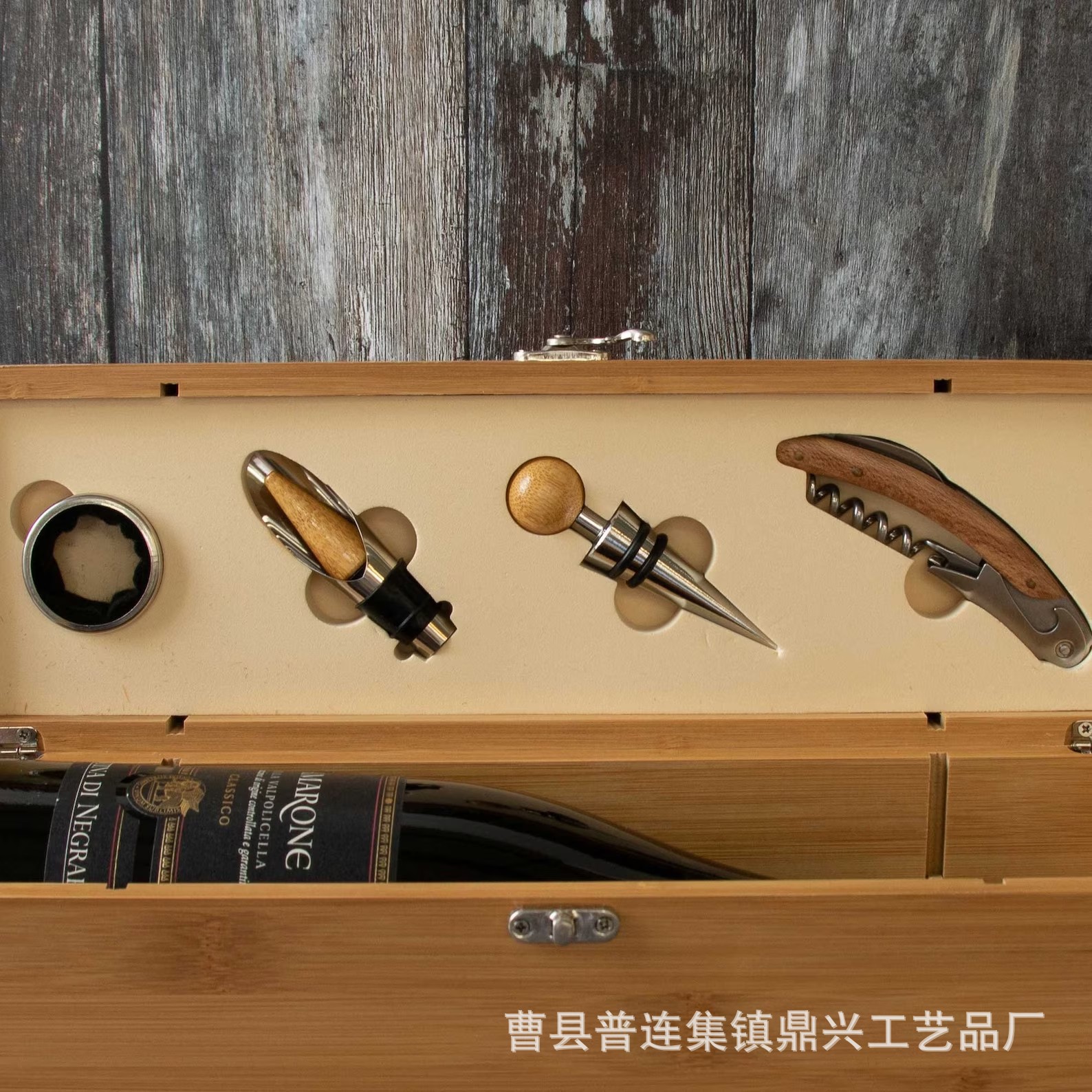 竹木のワインボックスのオープナーセットワインボックスのワインボックスを含む4セットの木製ワインプレゼント木箱