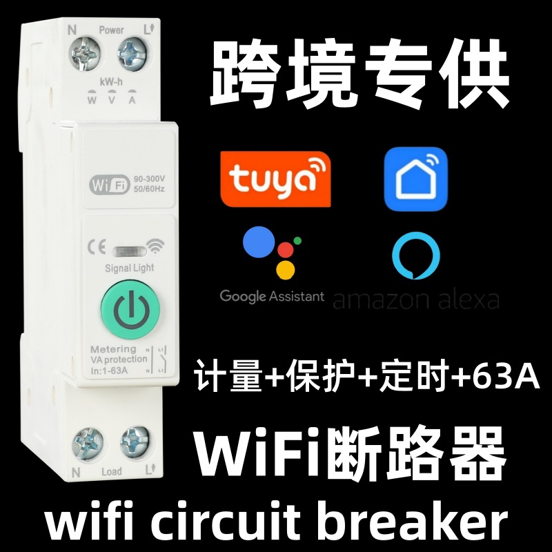 外贸物联网远程控制智能wifi断路器涂鸦语音小型家用计量空气开关