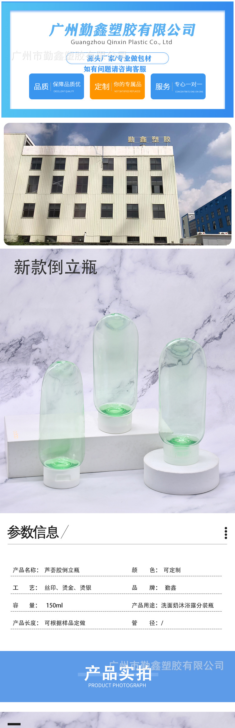 新奇特200ml倒立瓶peプラスチック分注瓶カバー化粧品透明精華水アロエ瓶