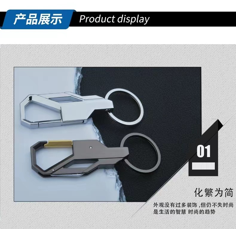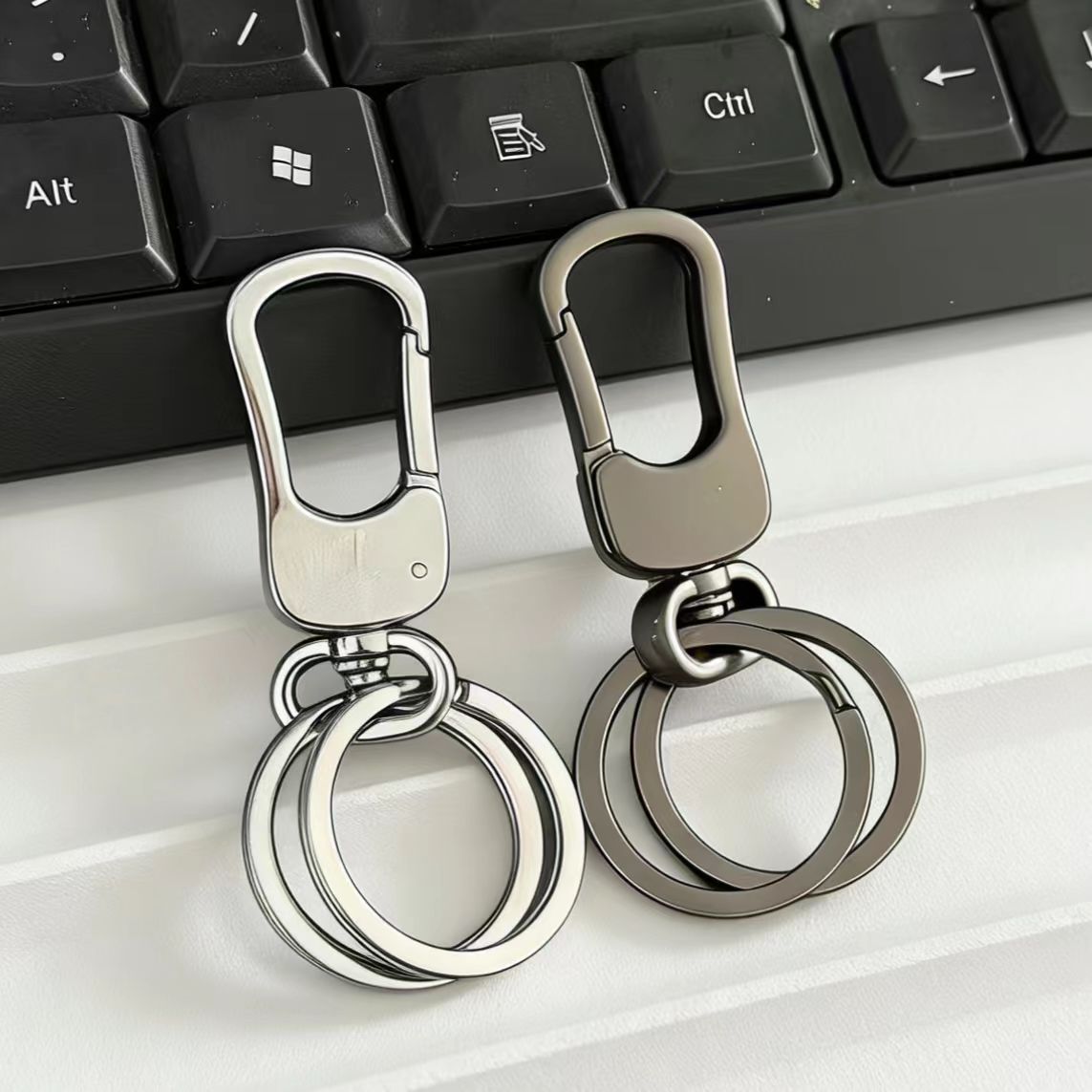 简约腰挂钥匙扣男士精致汽车链个性创意包挂饰双圈锁匙圈环