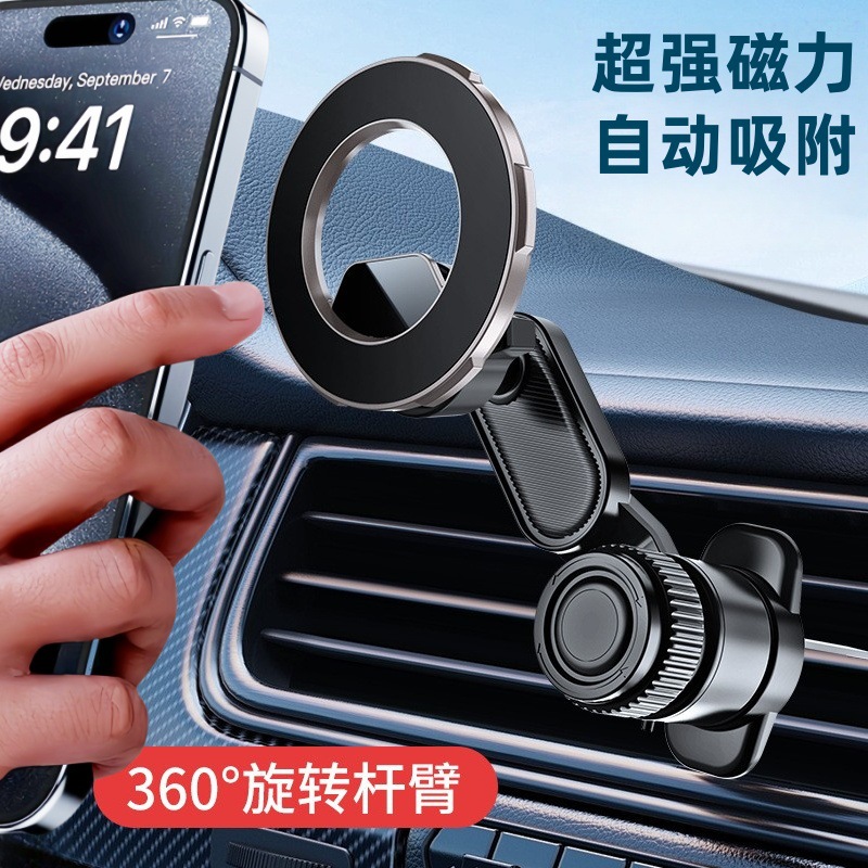 跨境车载手机支架出风口金属挂钩Magsafe强磁吸防抖磁吸手机支架