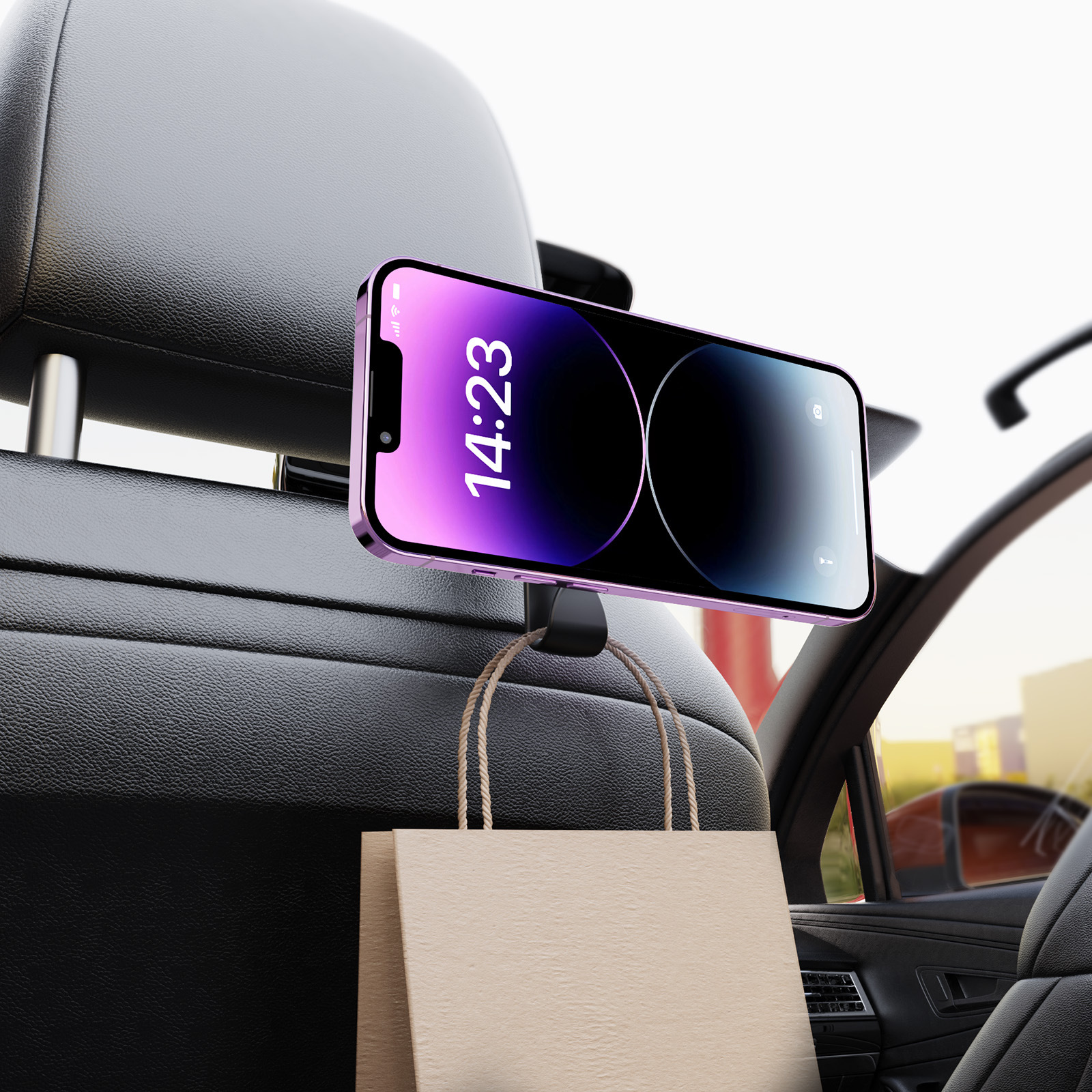 2025年新型車載折りたたみ式スマホホルダー 自動重力サポートスタンド エアコン吹き出し口 後部座席吊り下げフックスタンド