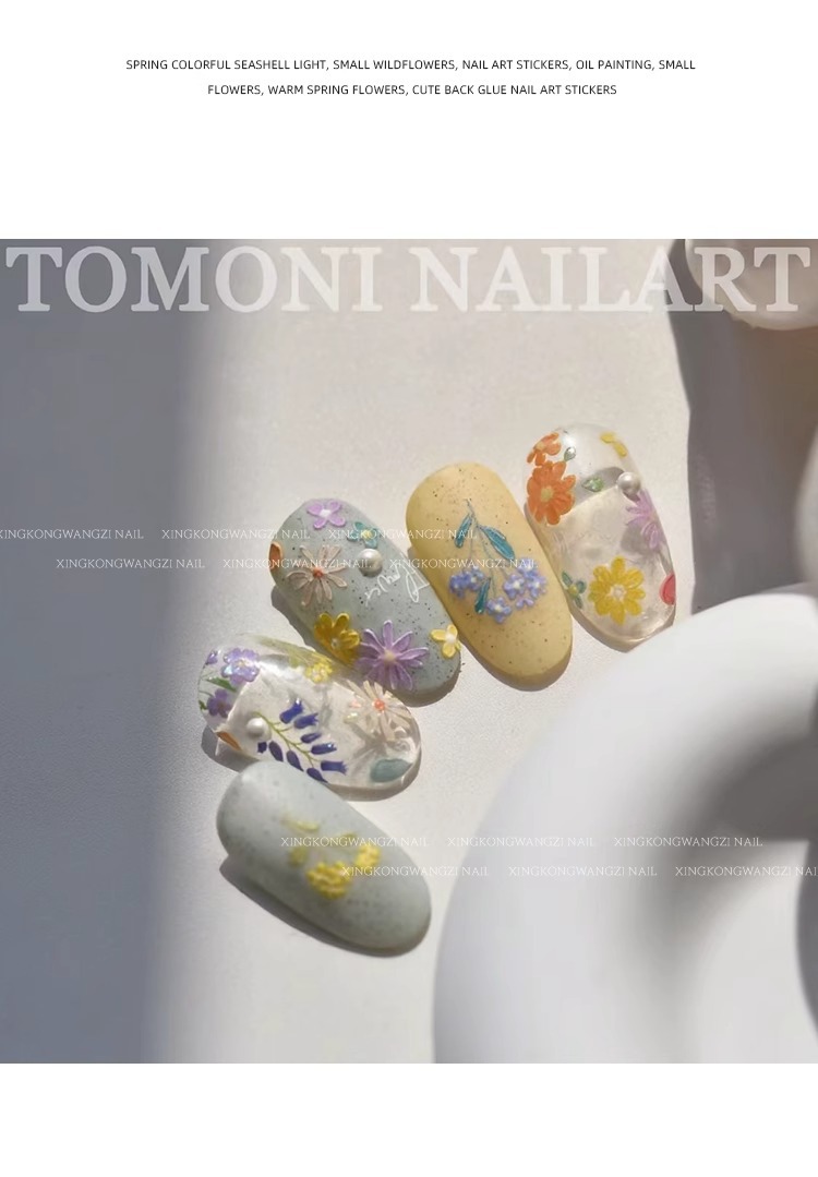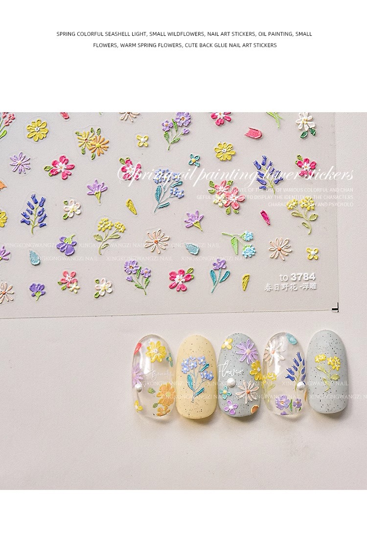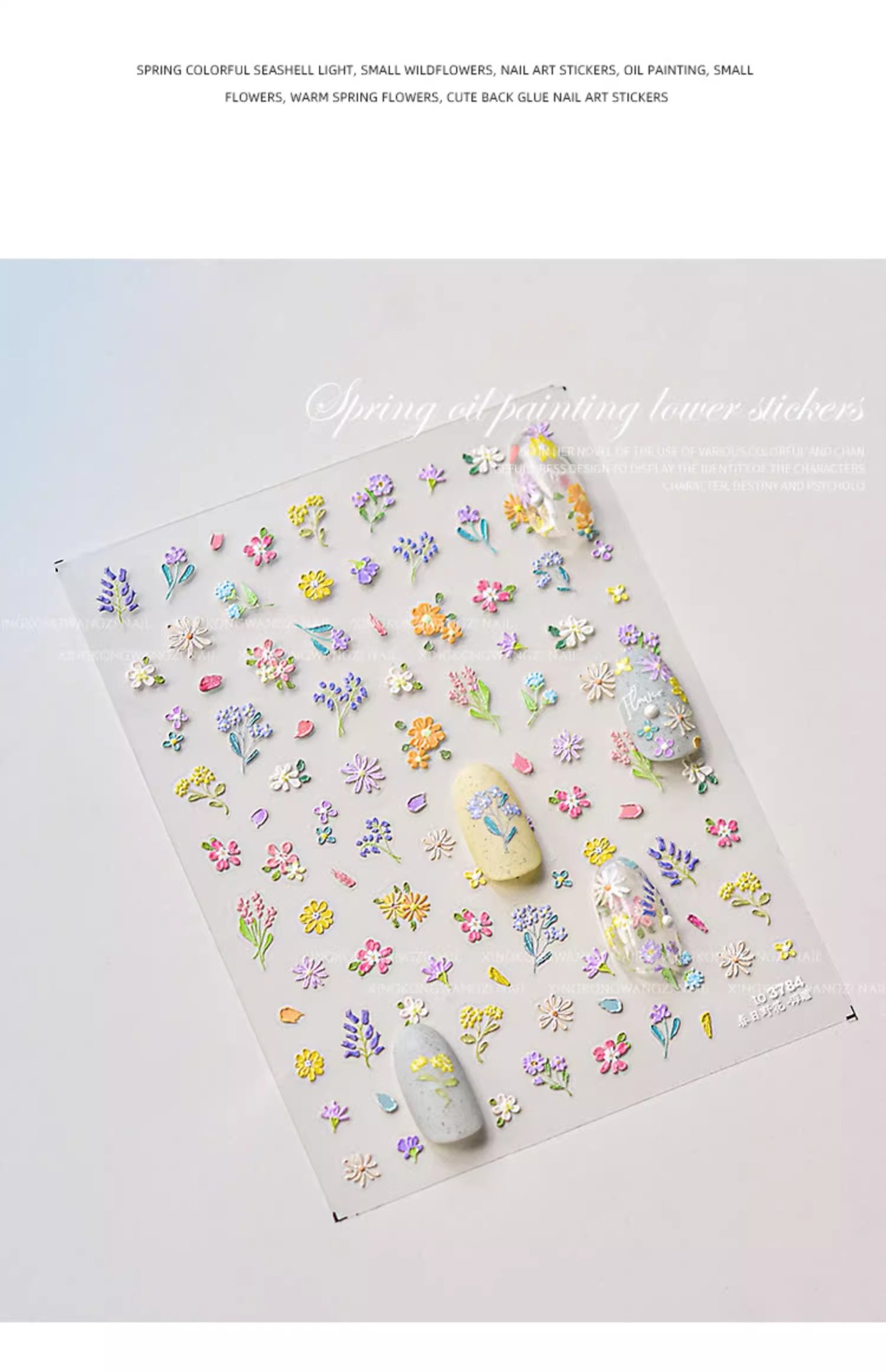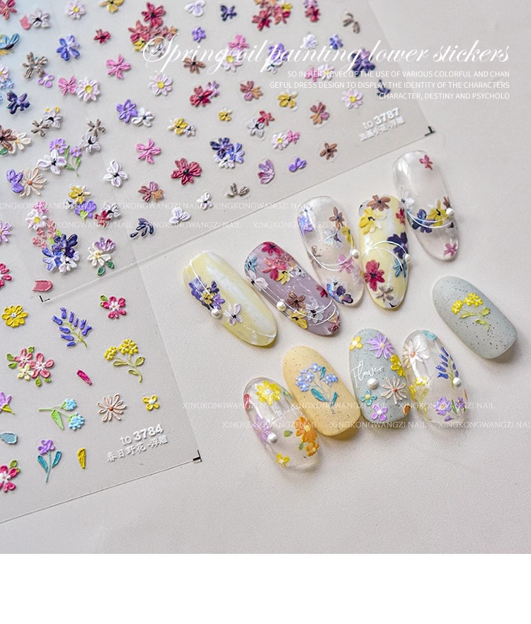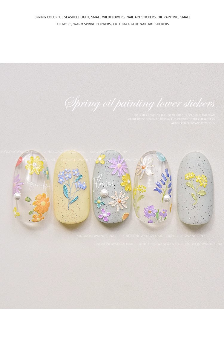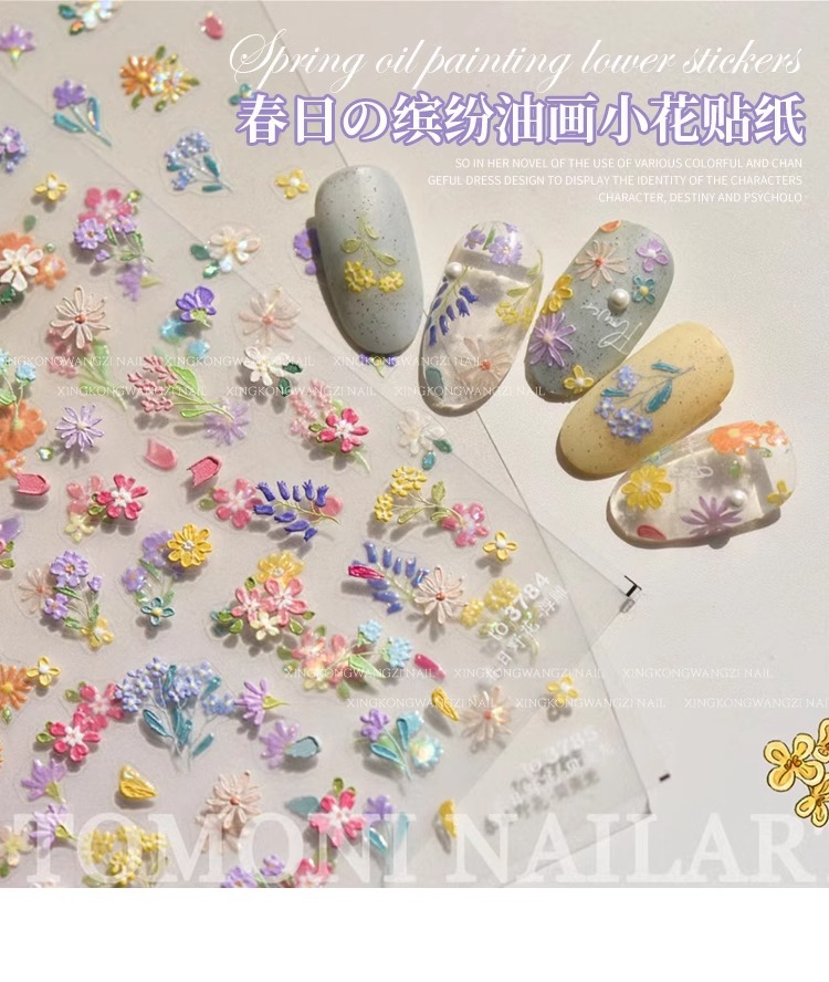 ネイルアート春カラフルな油絵フラワーステッカー 2025 新花柄立体レリーフネイルデカール装飾品