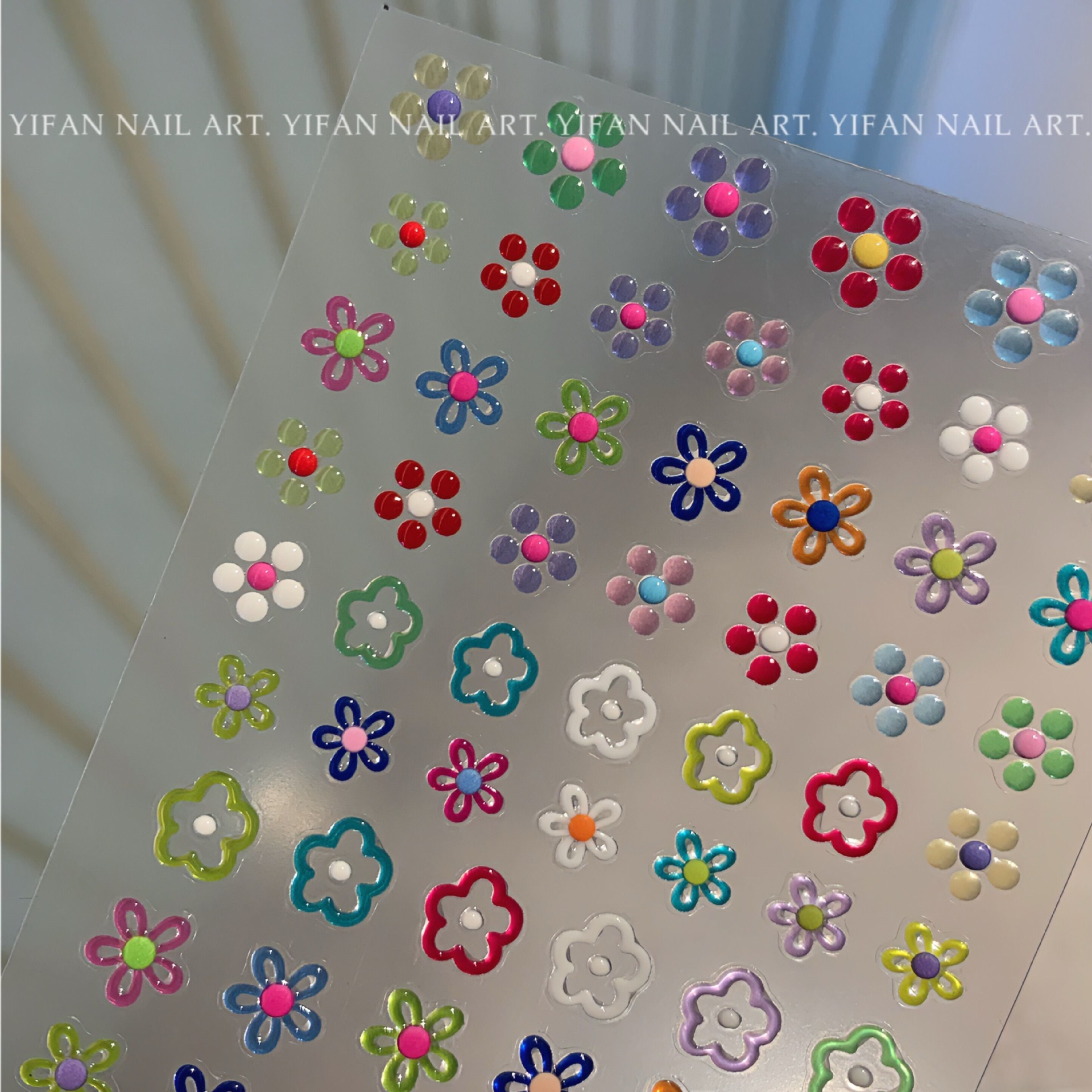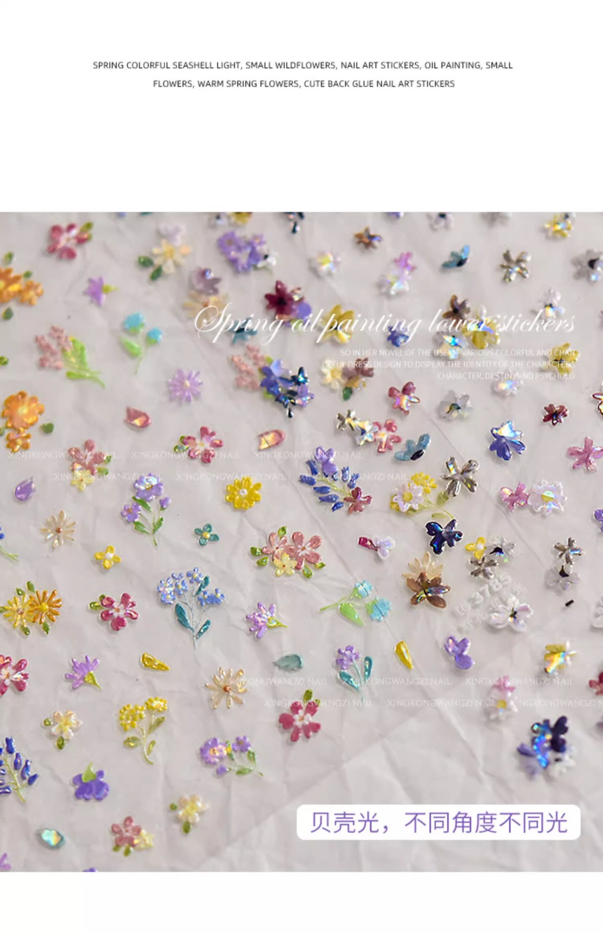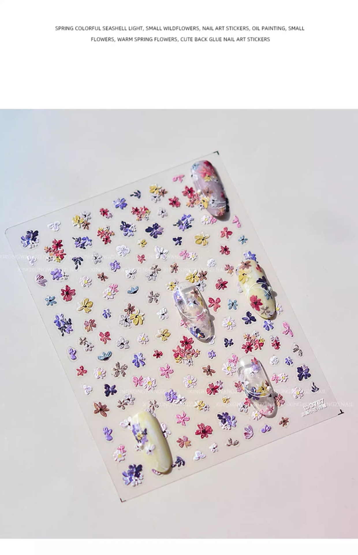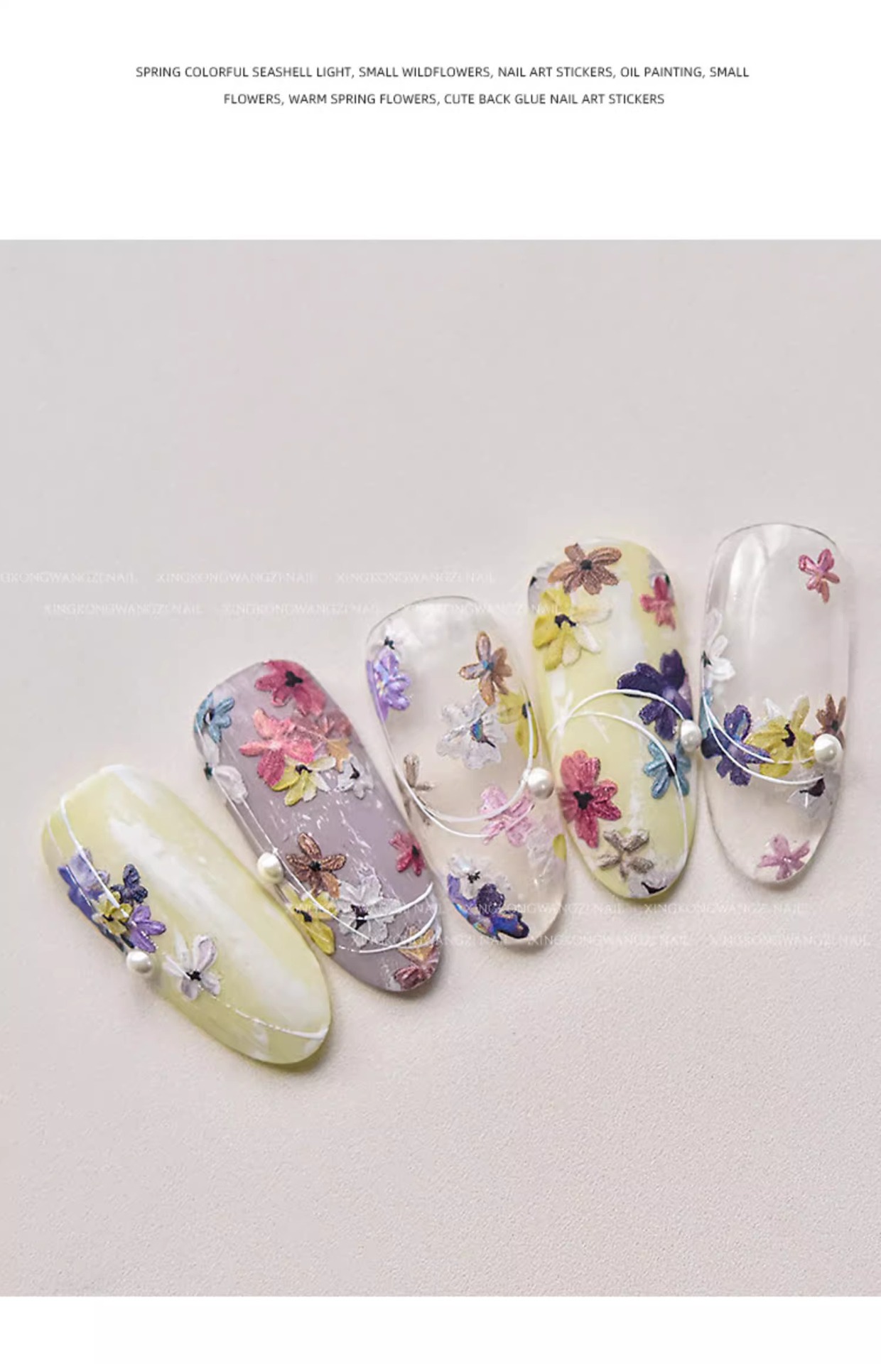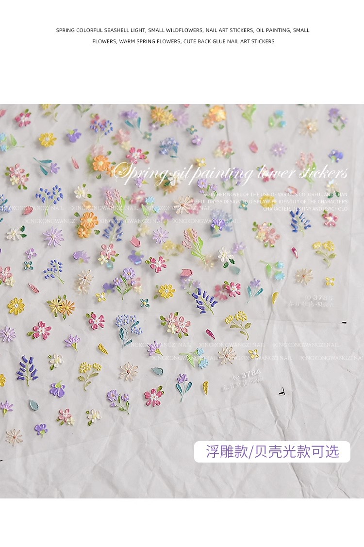 ネイルアート春カラフルな油絵フラワーステッカー 2025 新花柄立体レリーフネイルデカール装飾品
