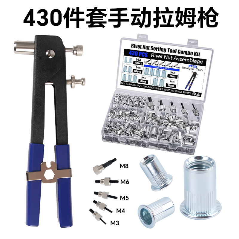 430pcs公制铆螺母组合180pcs手动拉姆枪工厂拉帽枪拉母枪柳钉枪