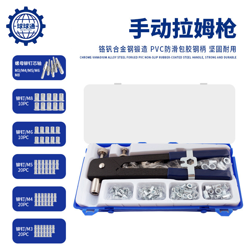 86pcs手动拉母枪套装106pcs手动拉姆枪工厂拉帽枪螺母枪柳钉枪
