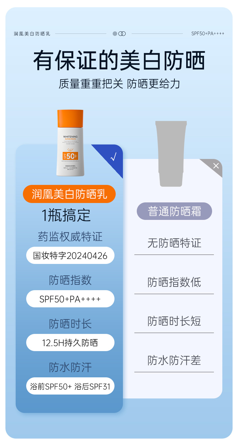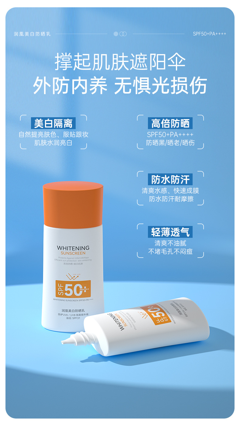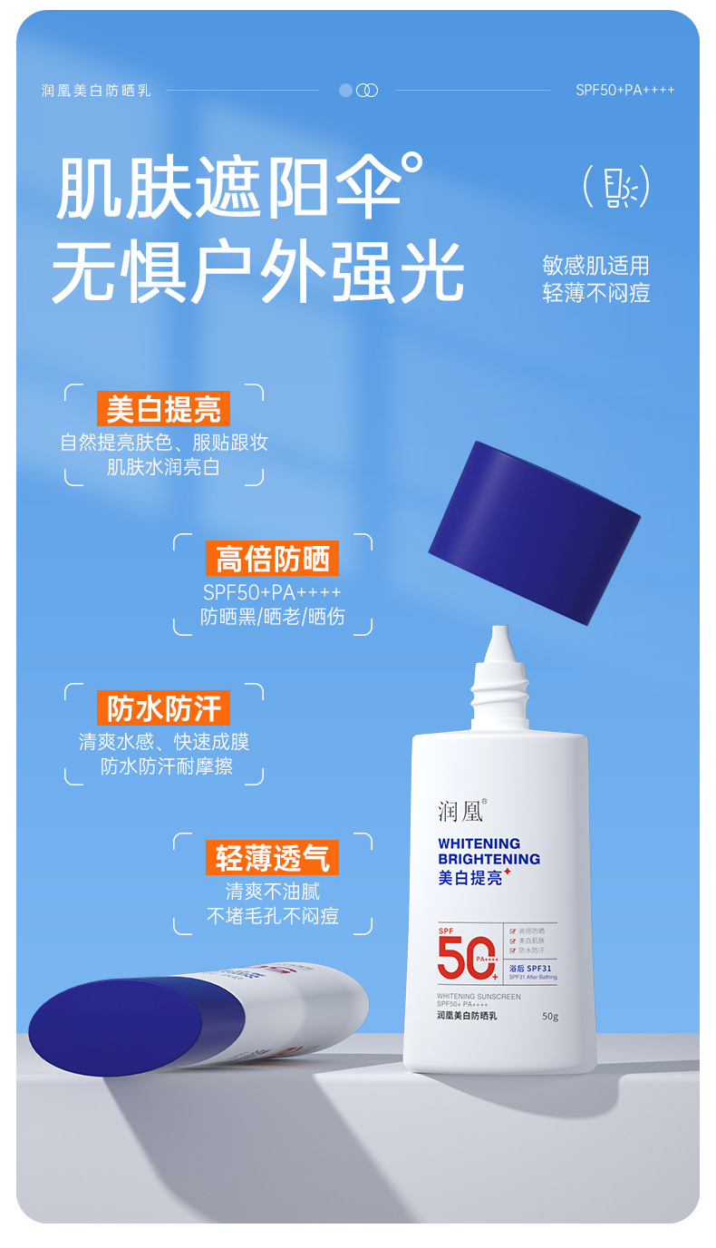 潤凰美白日焼け止めクリームは薄くて脂っこくないです。汗防止日焼け止めクリームSPF50 PA美白日焼け止めクリームです。