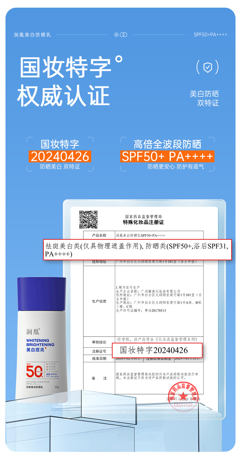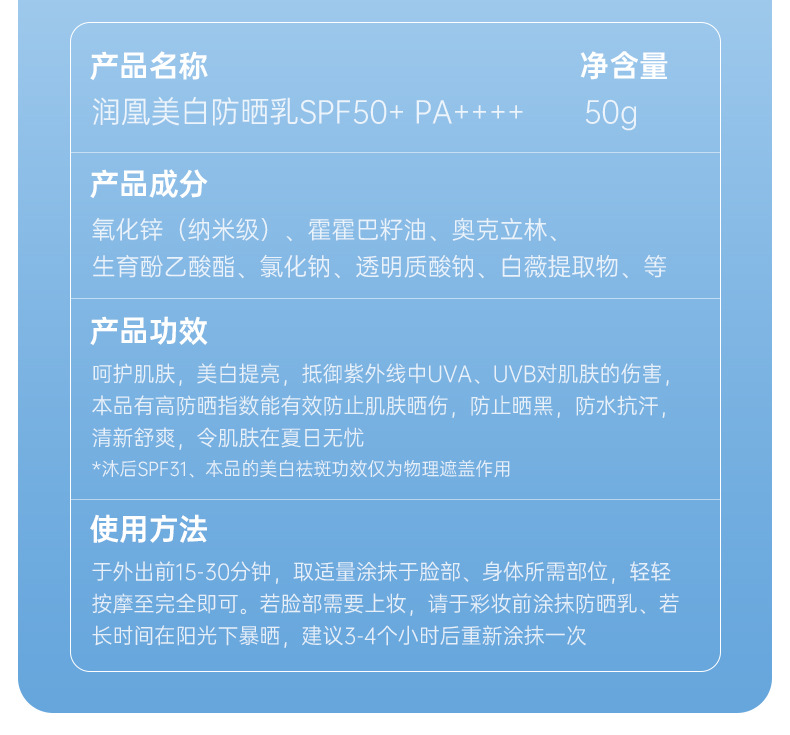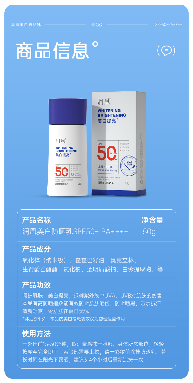 潤凰美白日焼け止めクリームは薄くて脂っこくないです。汗防止日焼け止めクリームSPF50 PA美白日焼け止めクリームです。