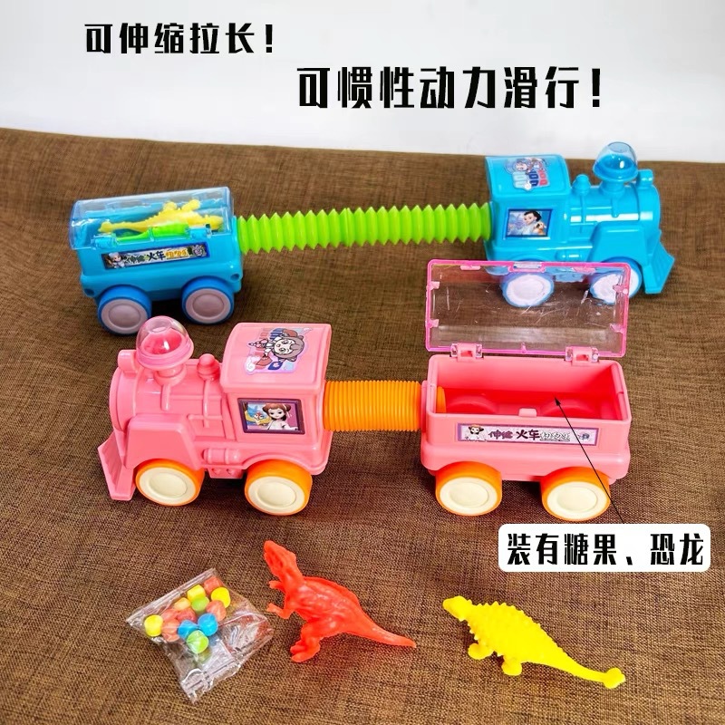 子供の創造的なキャンディーのおもちゃは伸縮慣性動力列車の少年恐竜の貯蔵箱のプレゼントを伸ばすことができる