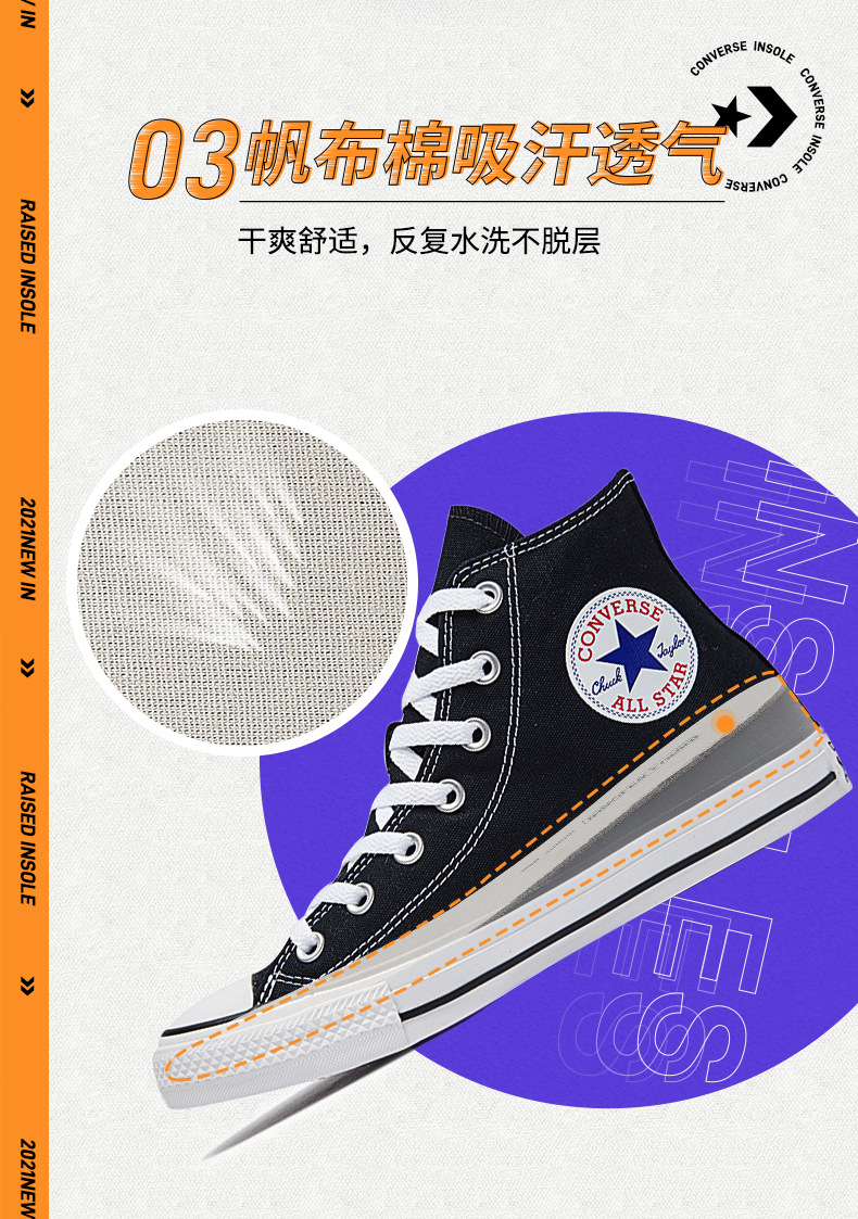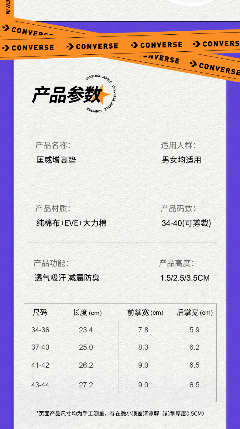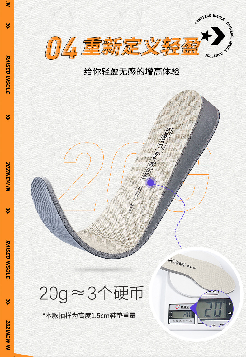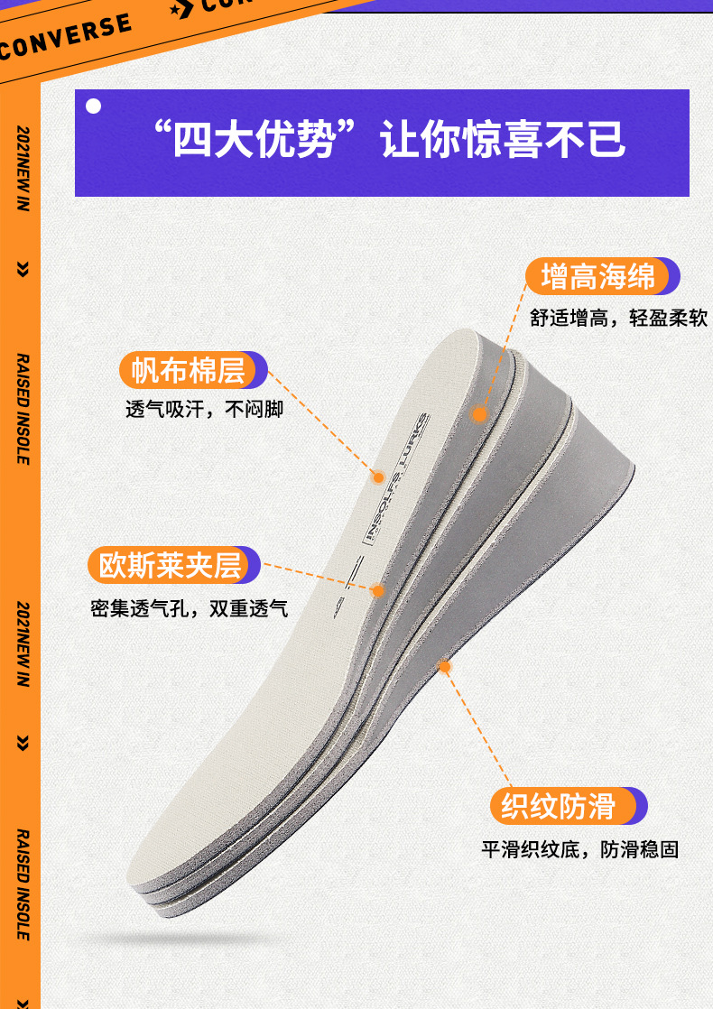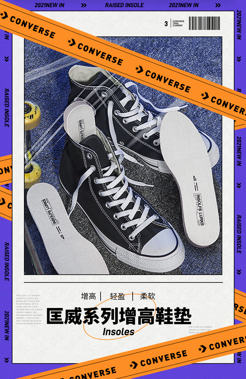 适用匡威内增高鞋垫帆布鞋专用男隐形增高不累脚女原装高帮增高垫