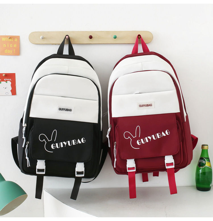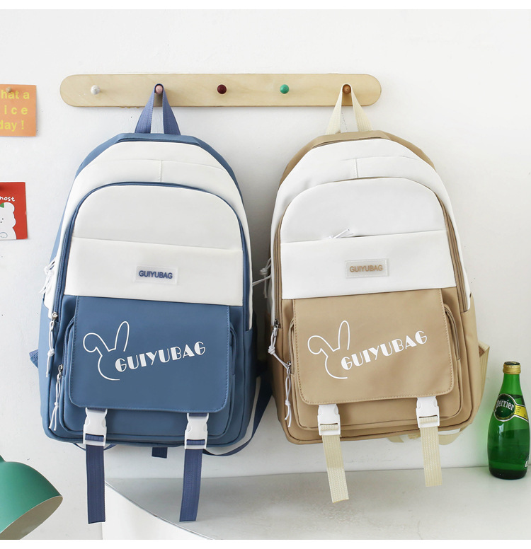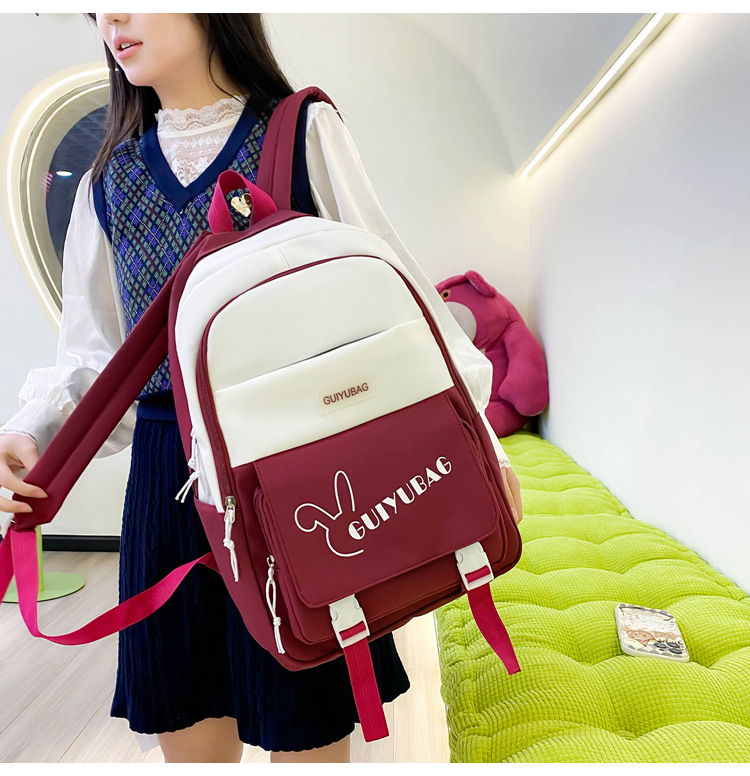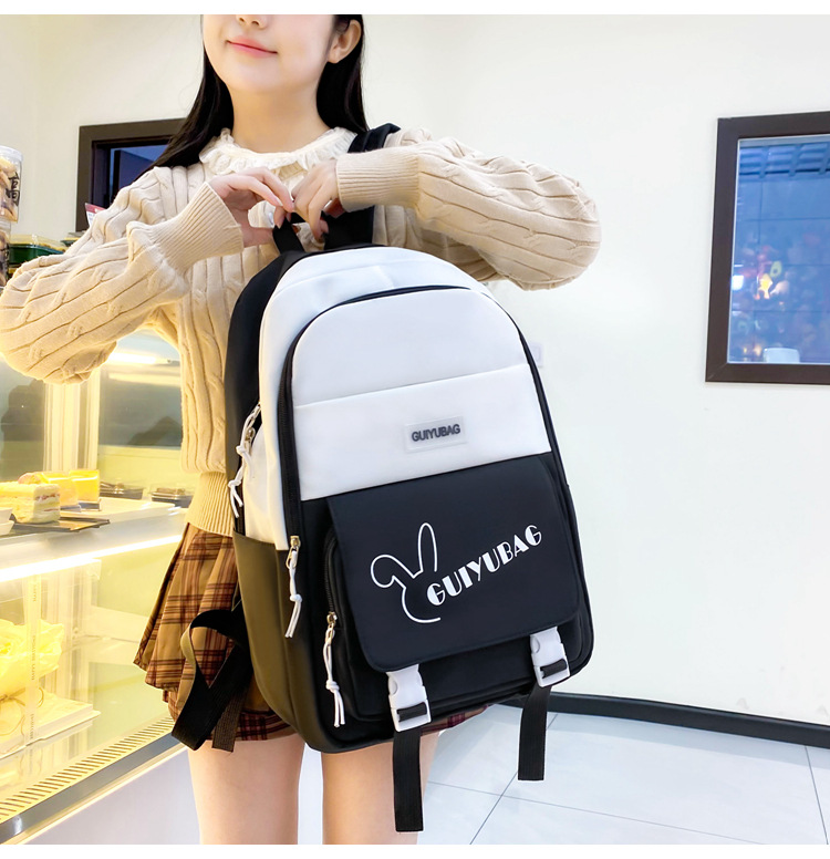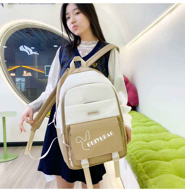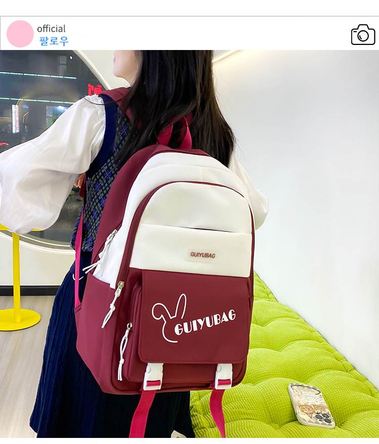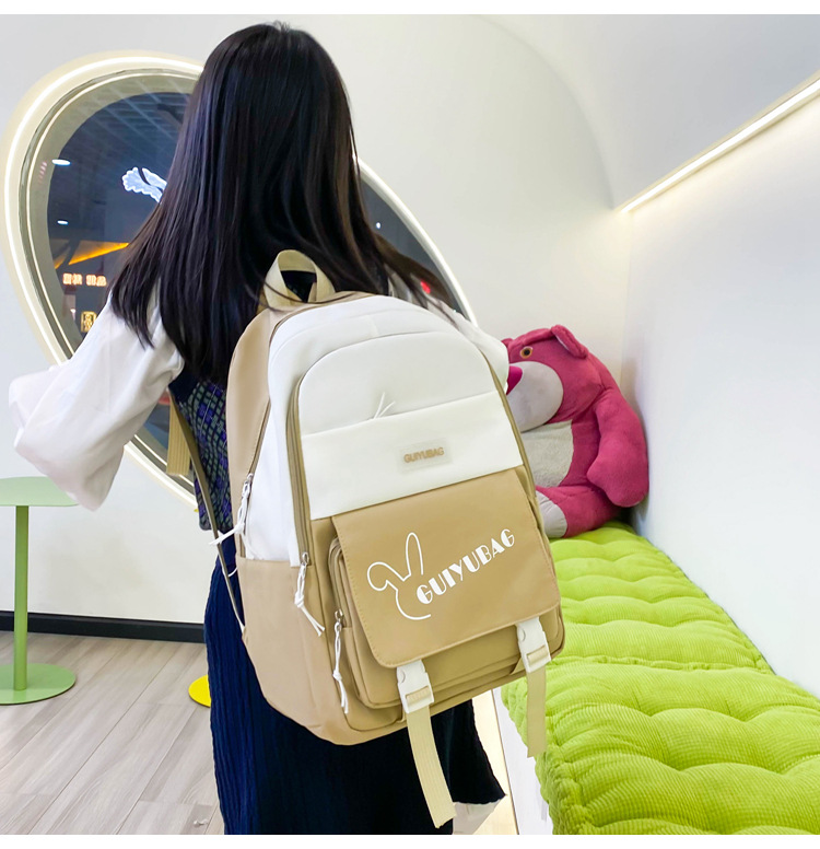 2025 新しいバックパック女性の小中学生スクールバッグ韓国語版多層大容量コントラストカラー軽量バックパックカバーバッグ