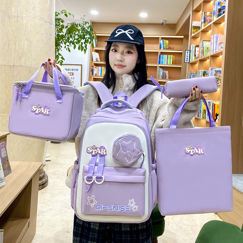 入学シーズンの小中学生カバン補習袋4点セット韓国版小清新大容量ランドセル学生カバン