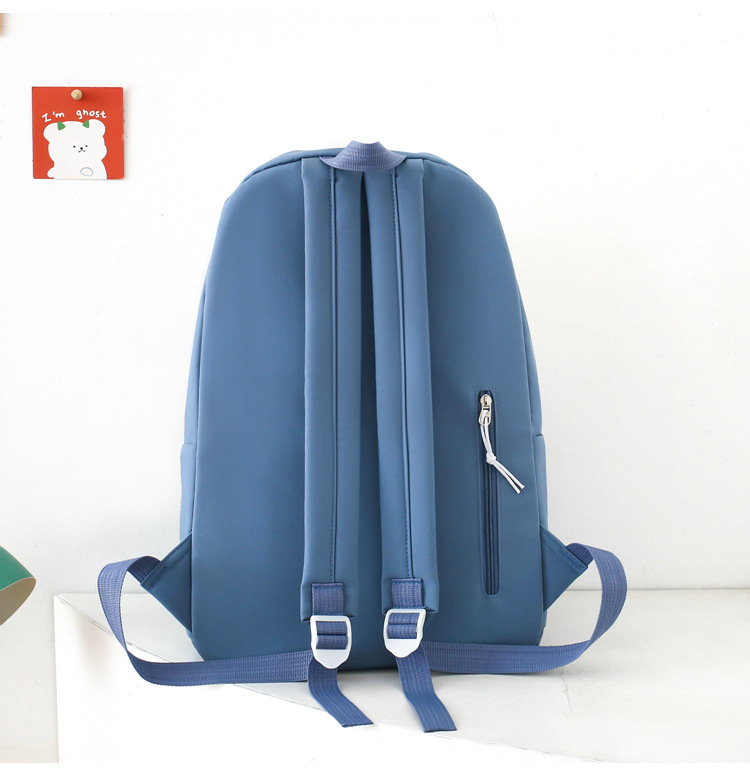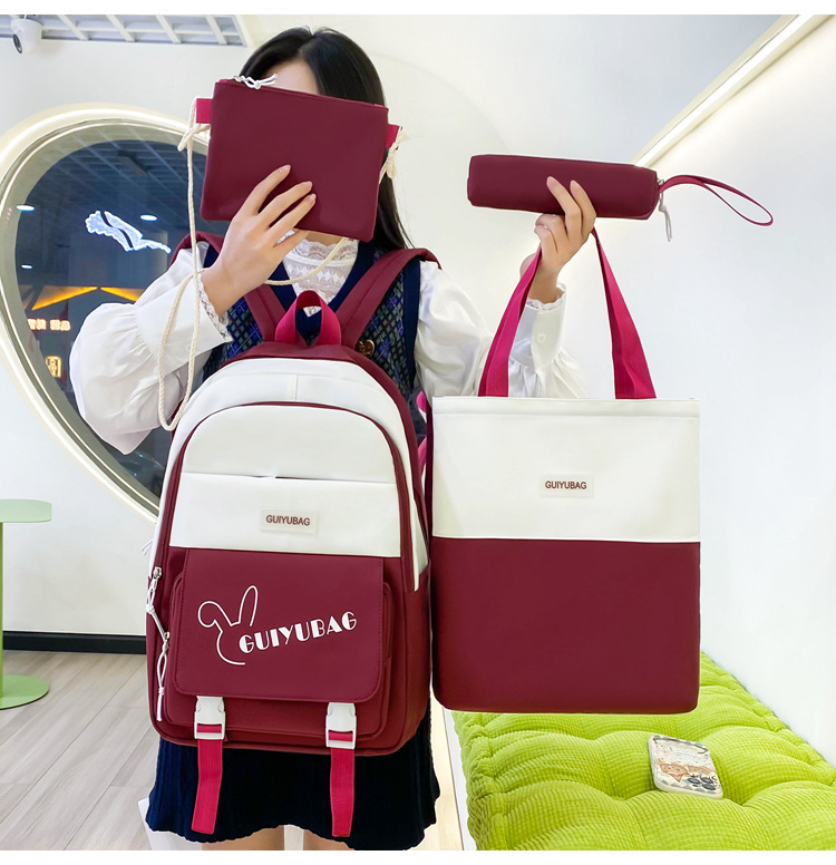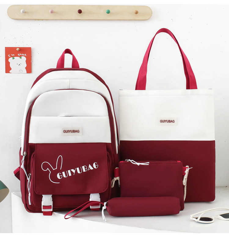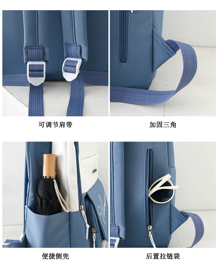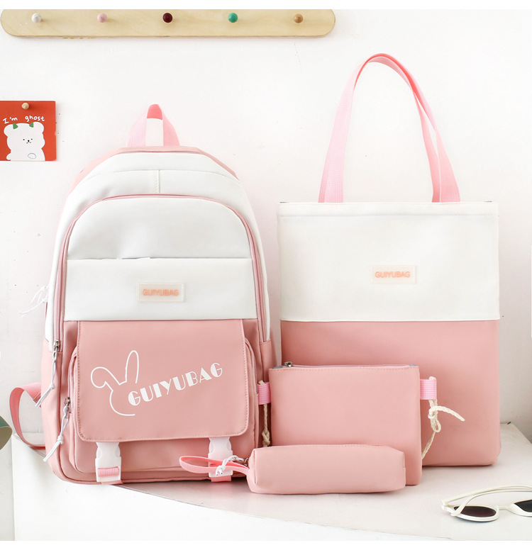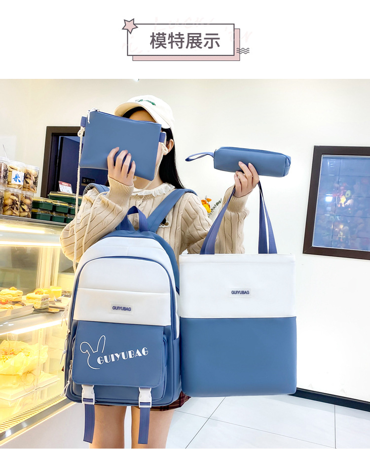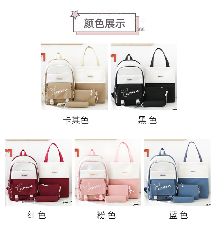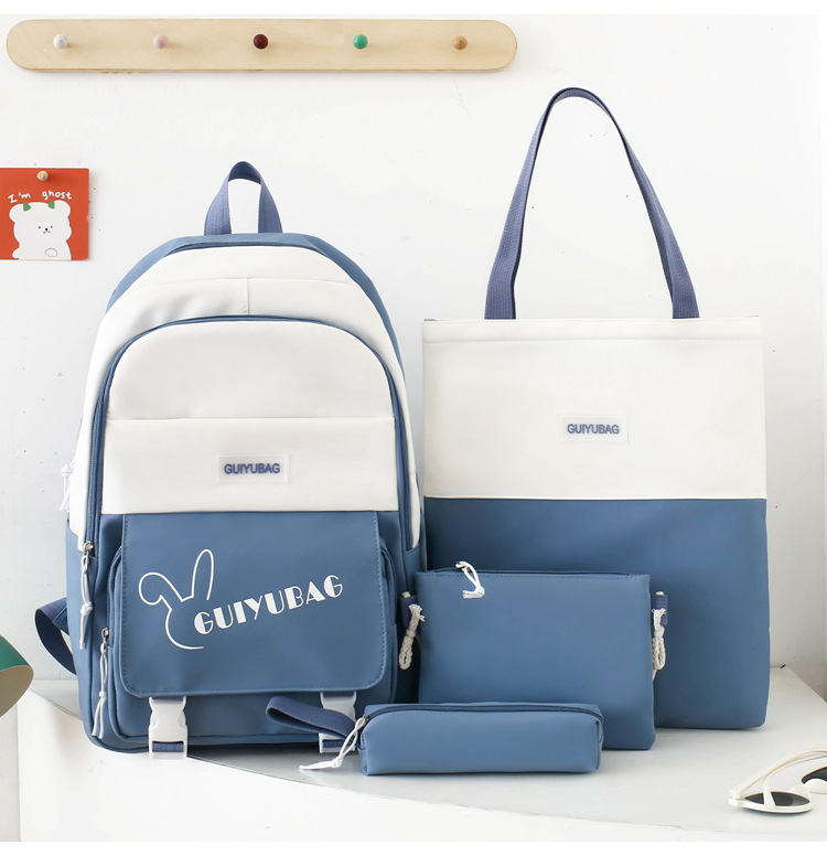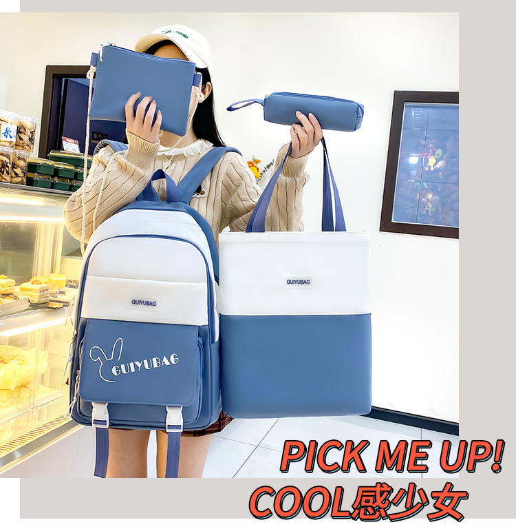 学生用バックパック、女の子向けの新鮮な4点セットスクールバッグ、無地のキャンパスバックパック、見栄えの良い大容量スクールバッグ
