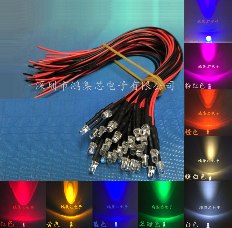 12v発光ダイオード3mm赤黄青緑白カラー12ボルト丸頭ハイライトledライトビーズバンド線長20cm