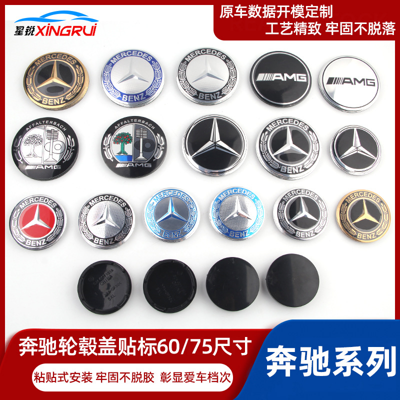 适用于新款奔驰轮毂盖60/75mm 红色/黑色麦穗轮毂中心盖改装标志
