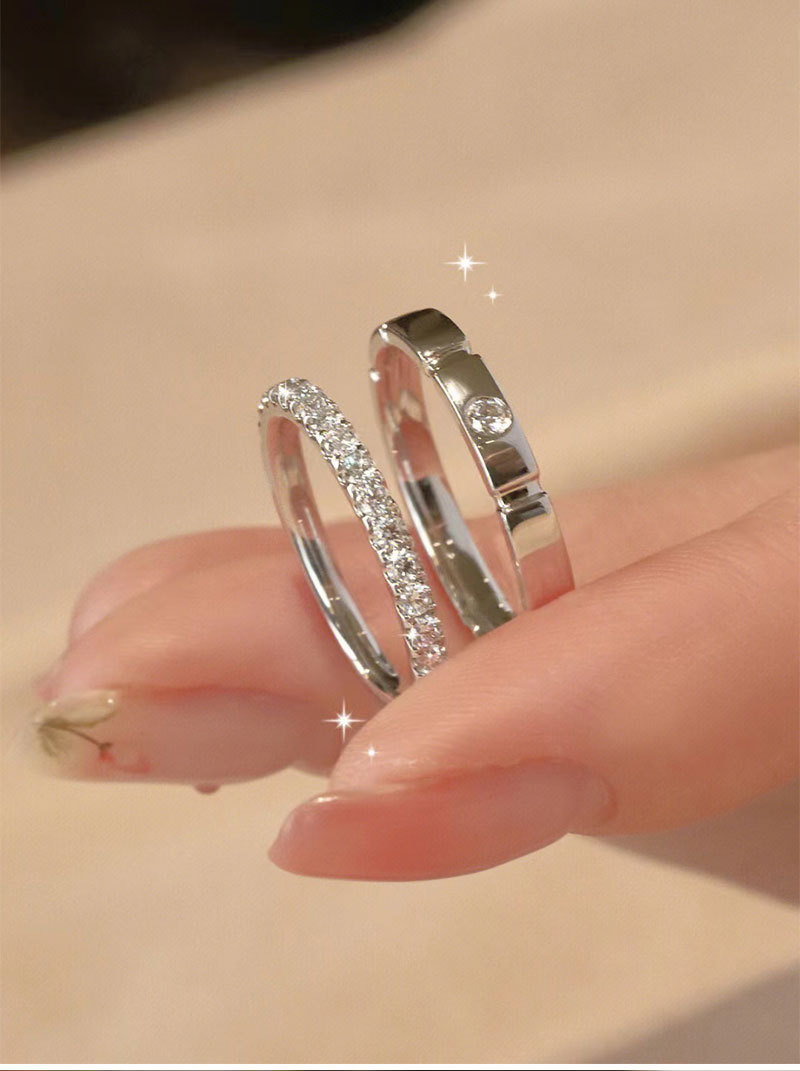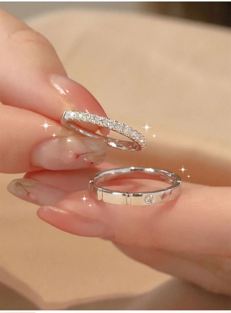 クロスボーダーの韓国版の銀メッキの開口部の男女の通用する指輪は簡単にダイヤモンドを入れて共に愛河のカップルの活口の対の指輪を過ごします。