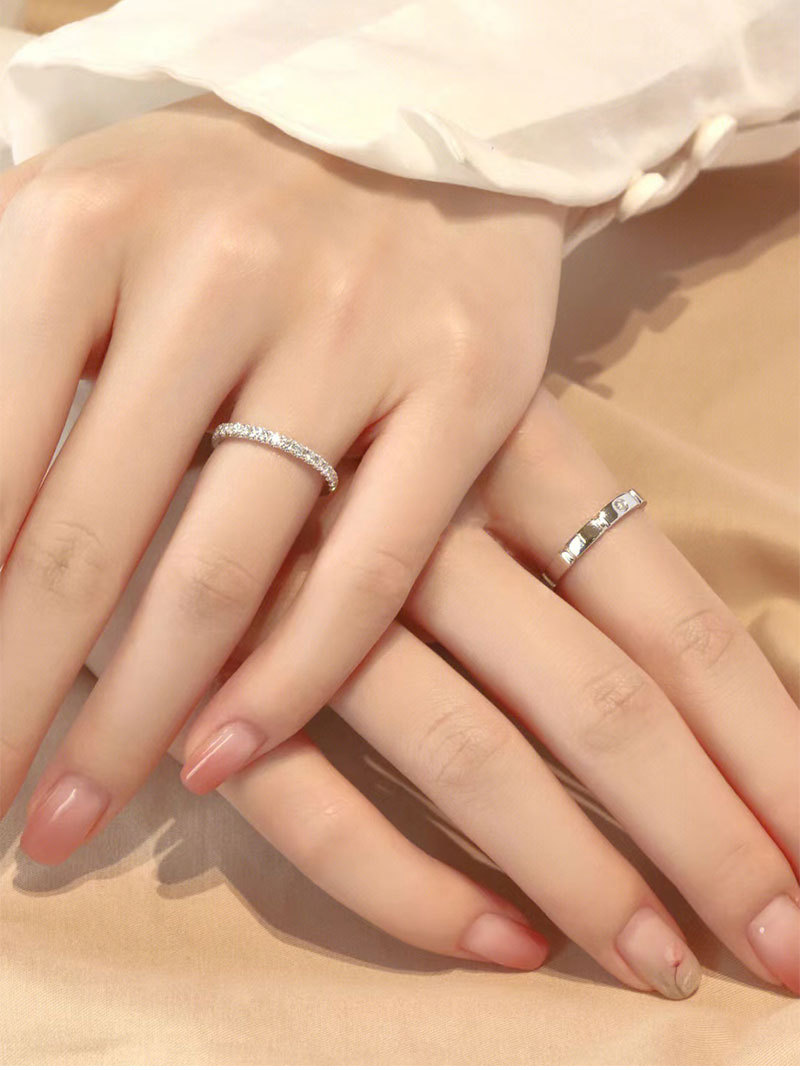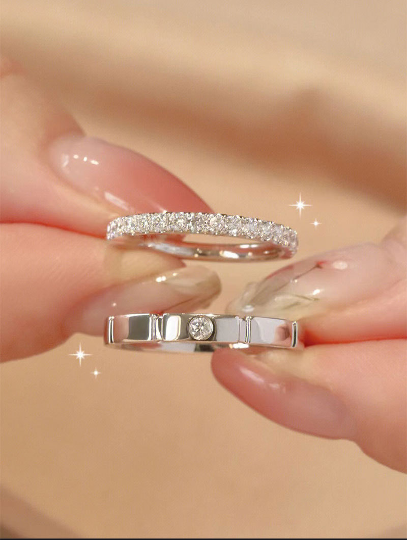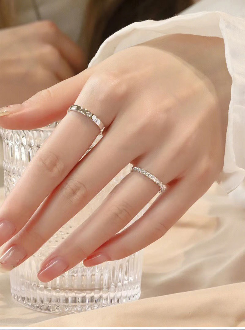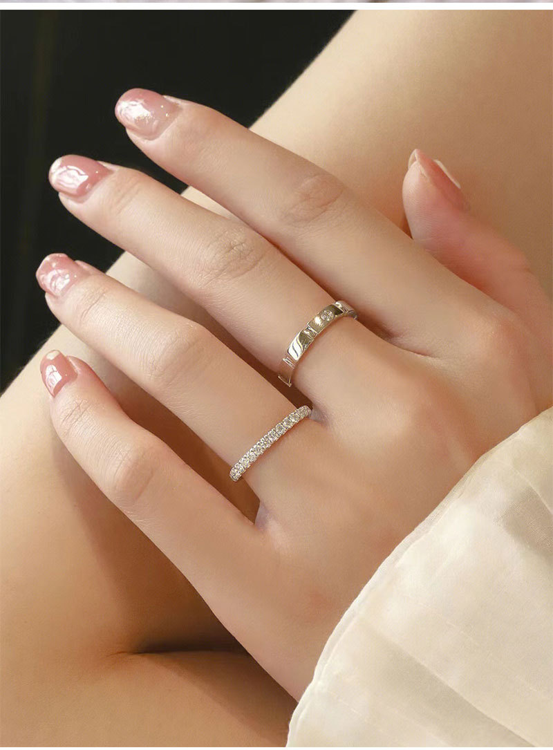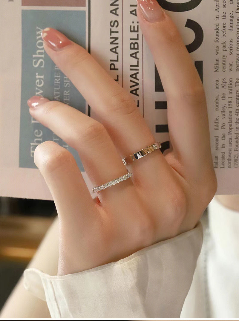 925純銀素輪指輪女性人差し指口指環夏シンプル小大衆デザイン感フラッシュドリル自律尾戒