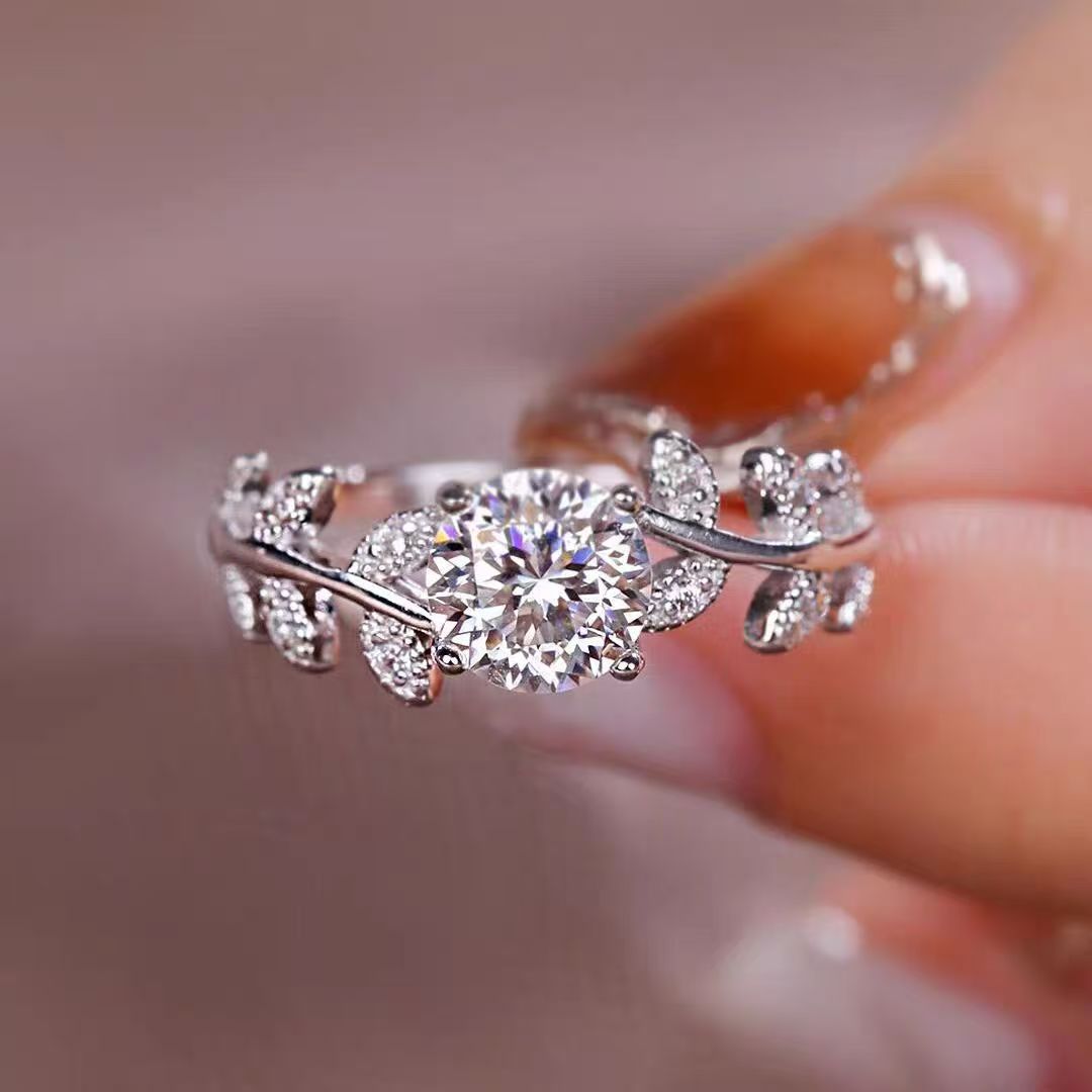 新款树叶闪钻锆石戒指女清新甜美百搭气质感开口调节戒指直播批发