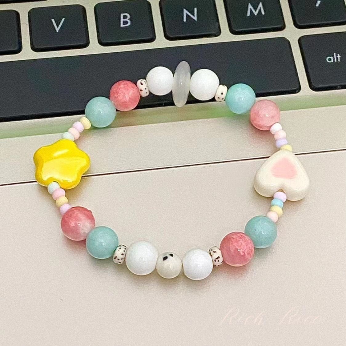 リゾート風海螺星陶磁器数珠ブレスレット女性軽豪華小衆精致手串高颜値学生党手飾り