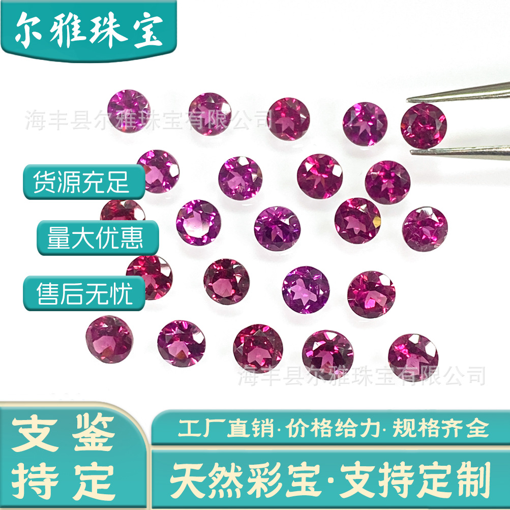 天然ガーネット無加工丸型リング面平底赤色系宝石DIY象嵌イヤリングネックレス可塘工場