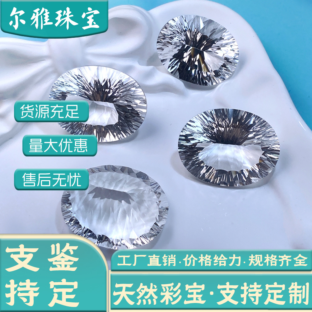 天然白水晶千禧切戒面千璽切楕円形裸石DIY包辺モザイクアクセサリー卸売り