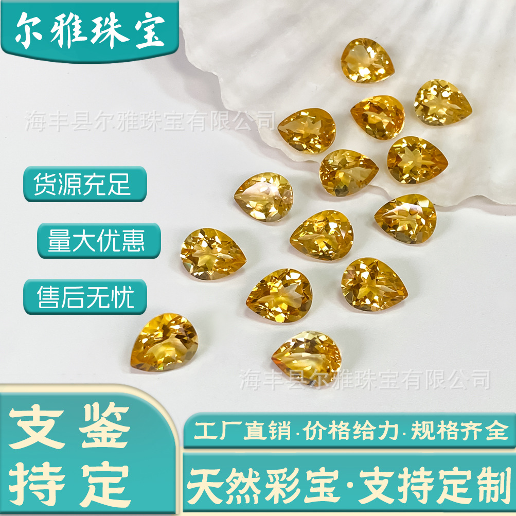 天然シトリンリング表面ドロップ型洋ナシ型裸石ジュエリー diy 象嵌石高品質切断技術卸売