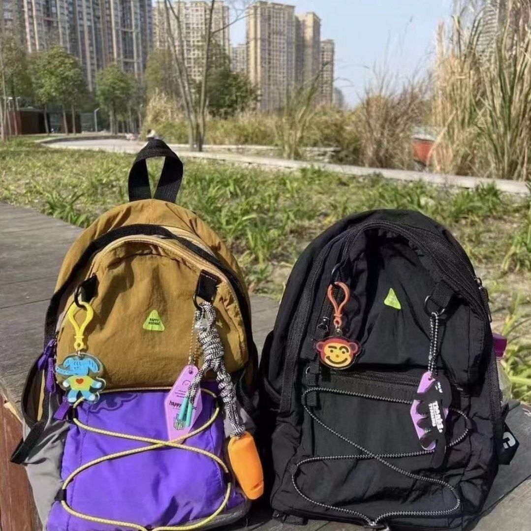 新款多口袋轻便双肩包休闲旅游双肩背包简约款背包抽绳翻盖韩版