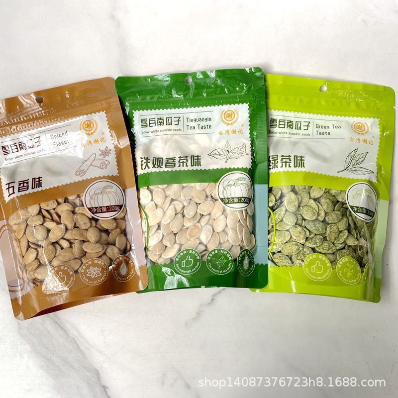 台湾謝記真っ白なカボチャの種緑茶味五香味鉄観音茶味208g袋ナッツ炒めスナック