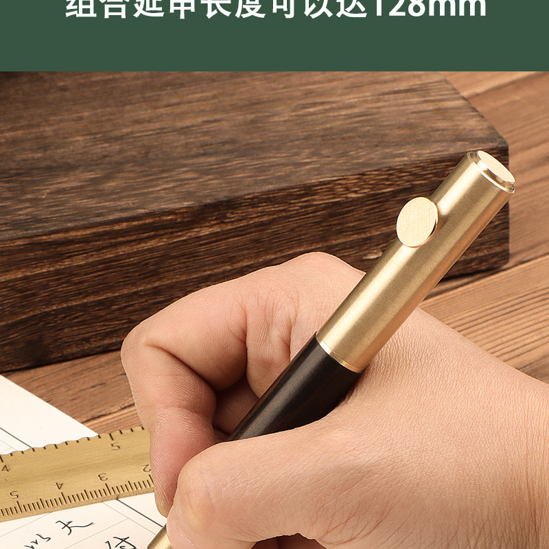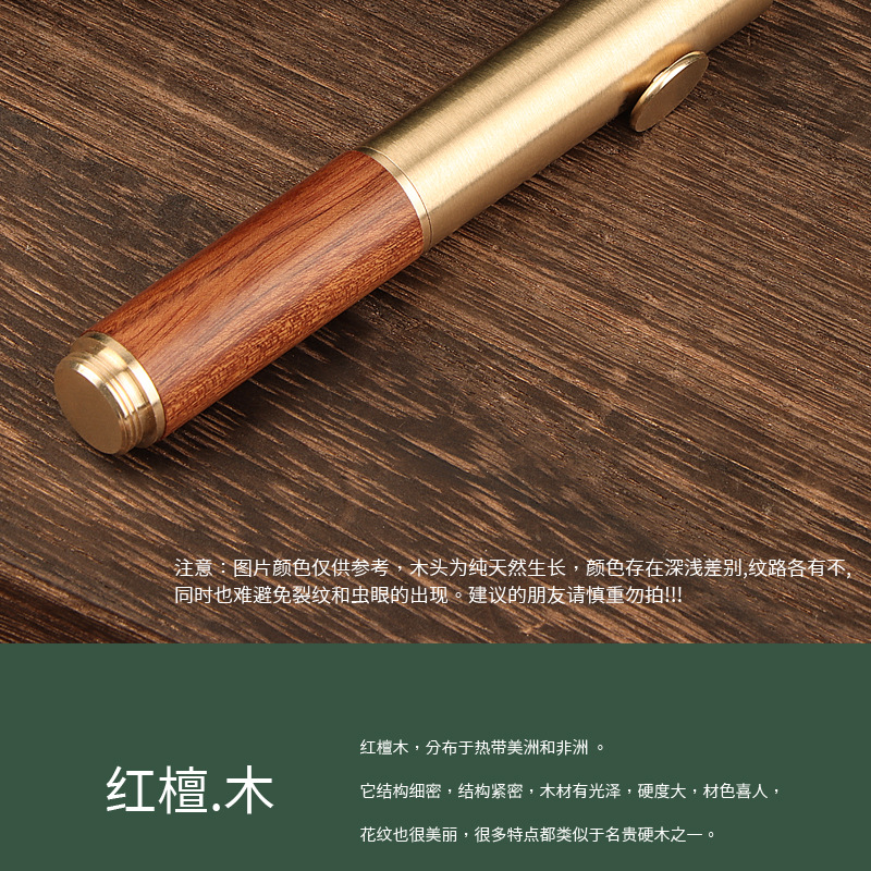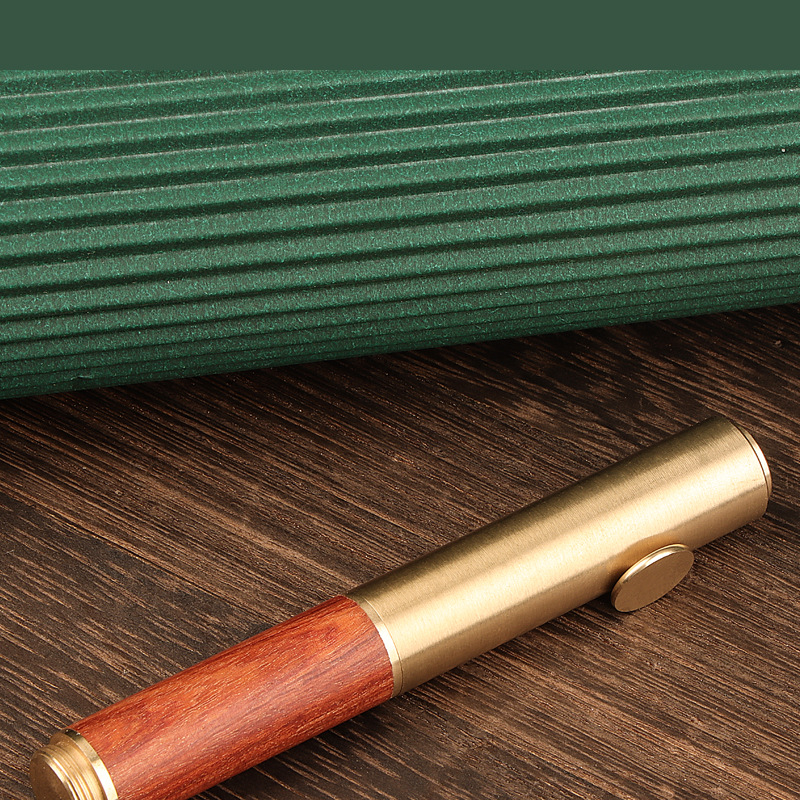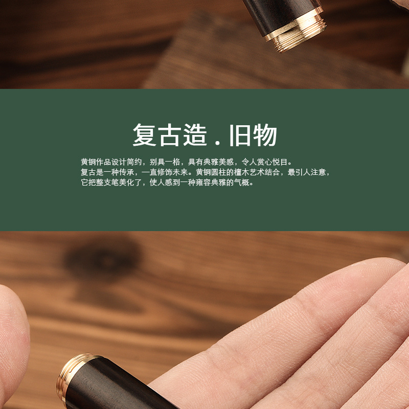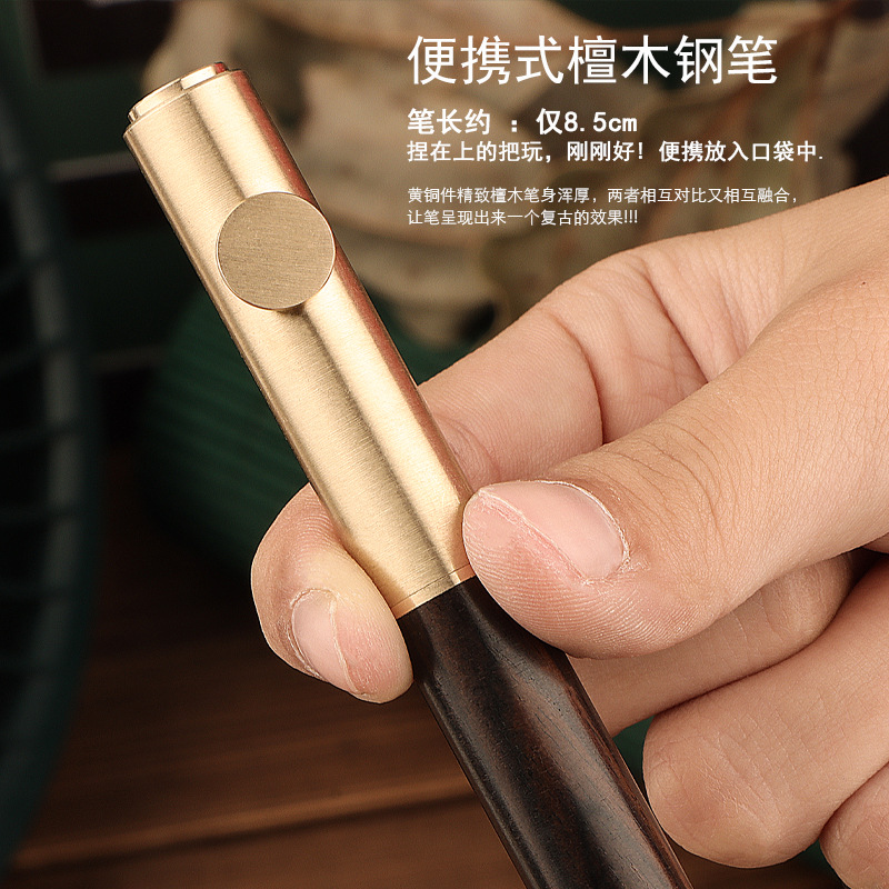レトロ真鍮檀木携帯型ミニポケットペン学生書美工絵画練習字ビジネスプレゼント