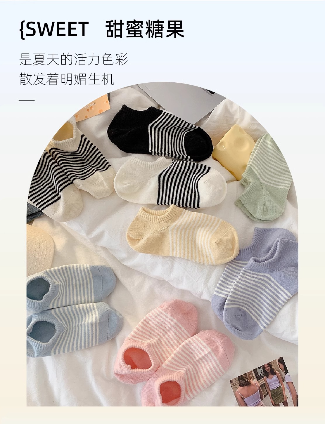 新しいストライプの夏の女性の靴下の薄いタイプの夏の女性の船の靴下の見えない靴下の夏のソックスの女性の吸汗の通気性の防臭性の靴下