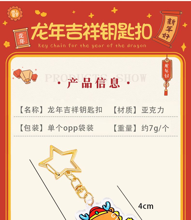 アニメ龍年キーホルダー学生かわいいバッグペンダント創意新年アクリルペンダント文房具プレゼント