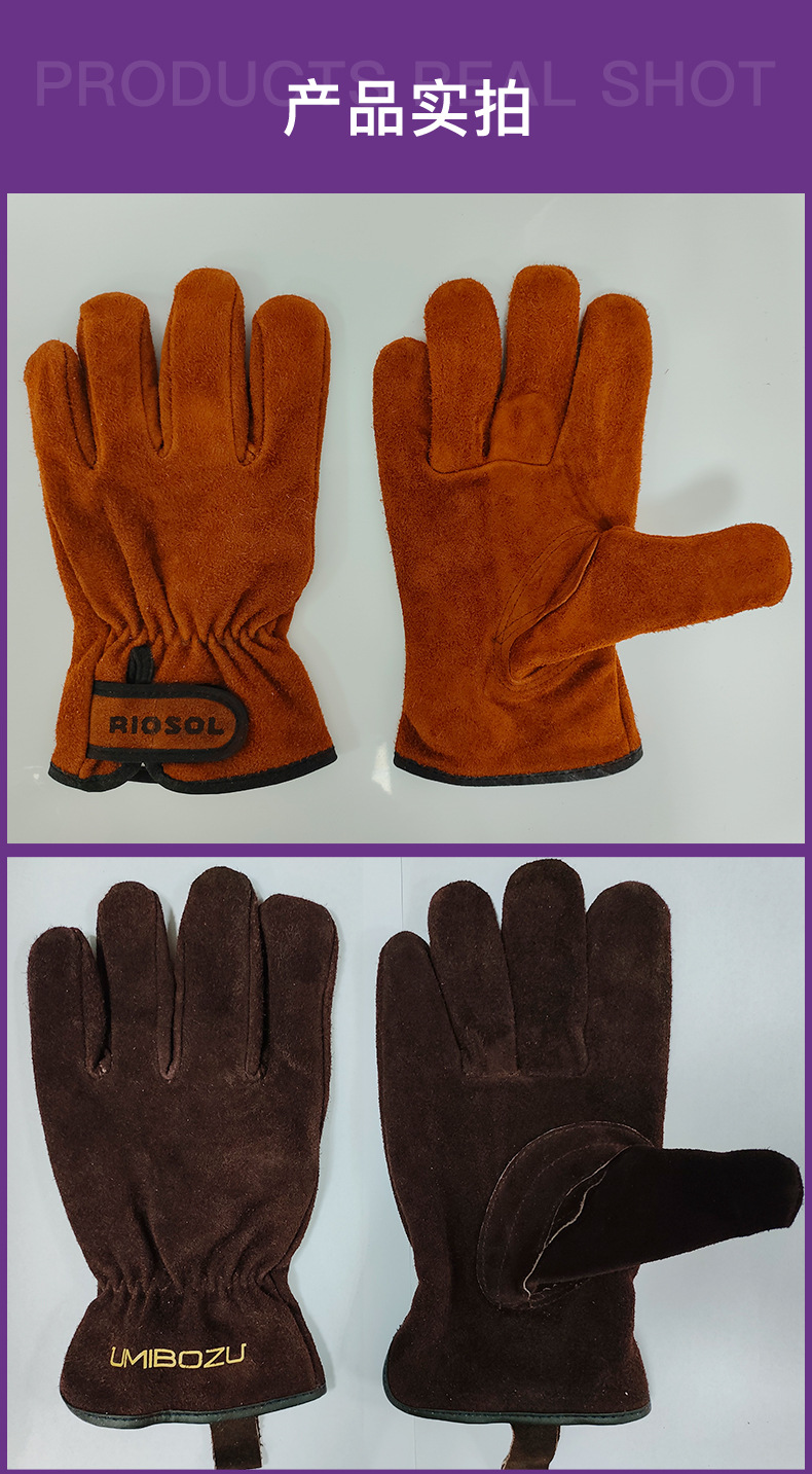 黄牛皮司机工作手套批发劳保电焊焊工防滑防烫防火花耐磨干活高州